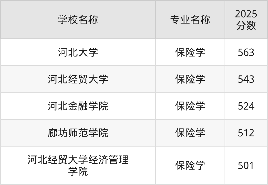下文将为大家展示河北省大学保险学专业2025年在河北高考的最低录取分数线!