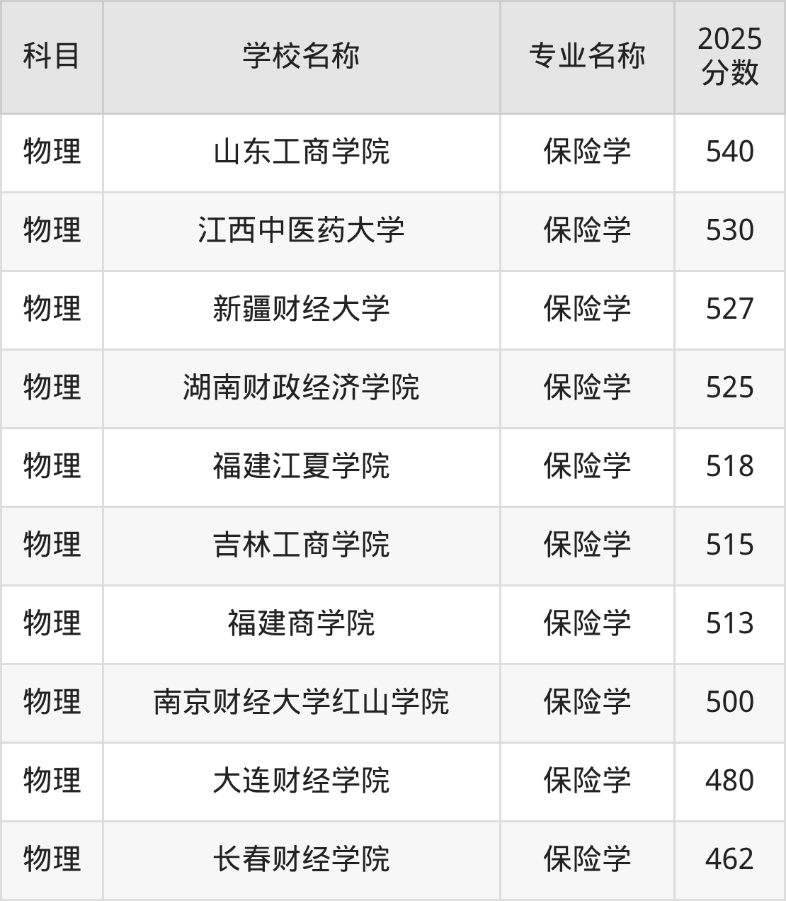 | 学校名称 | 专业名称 | 2025 分数 |