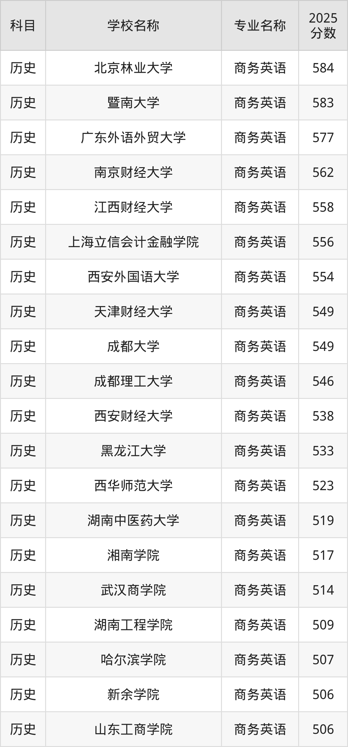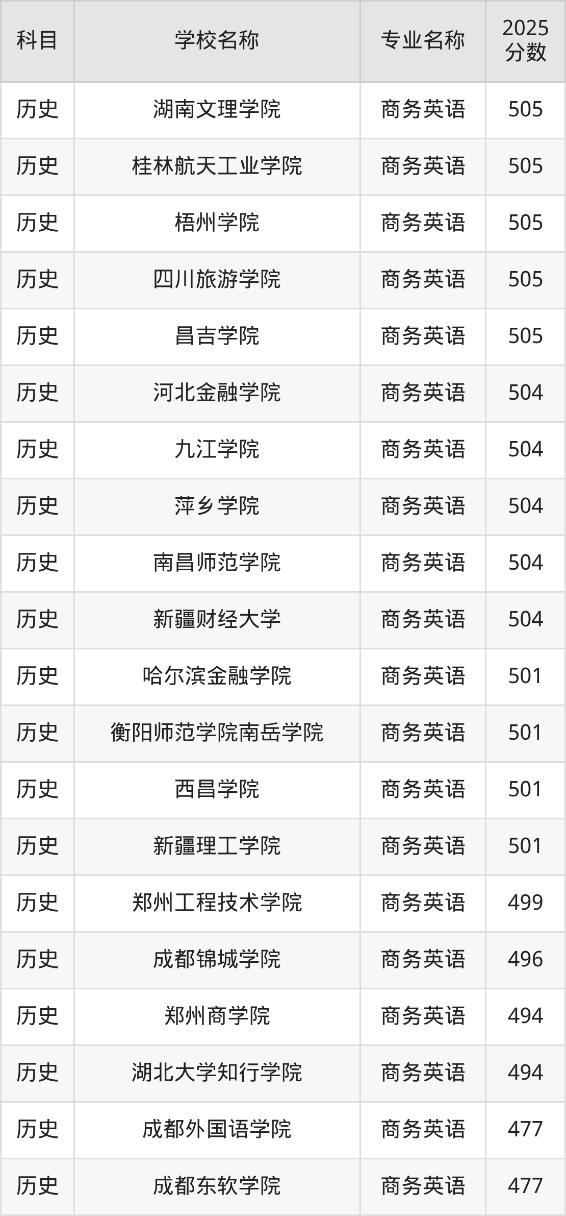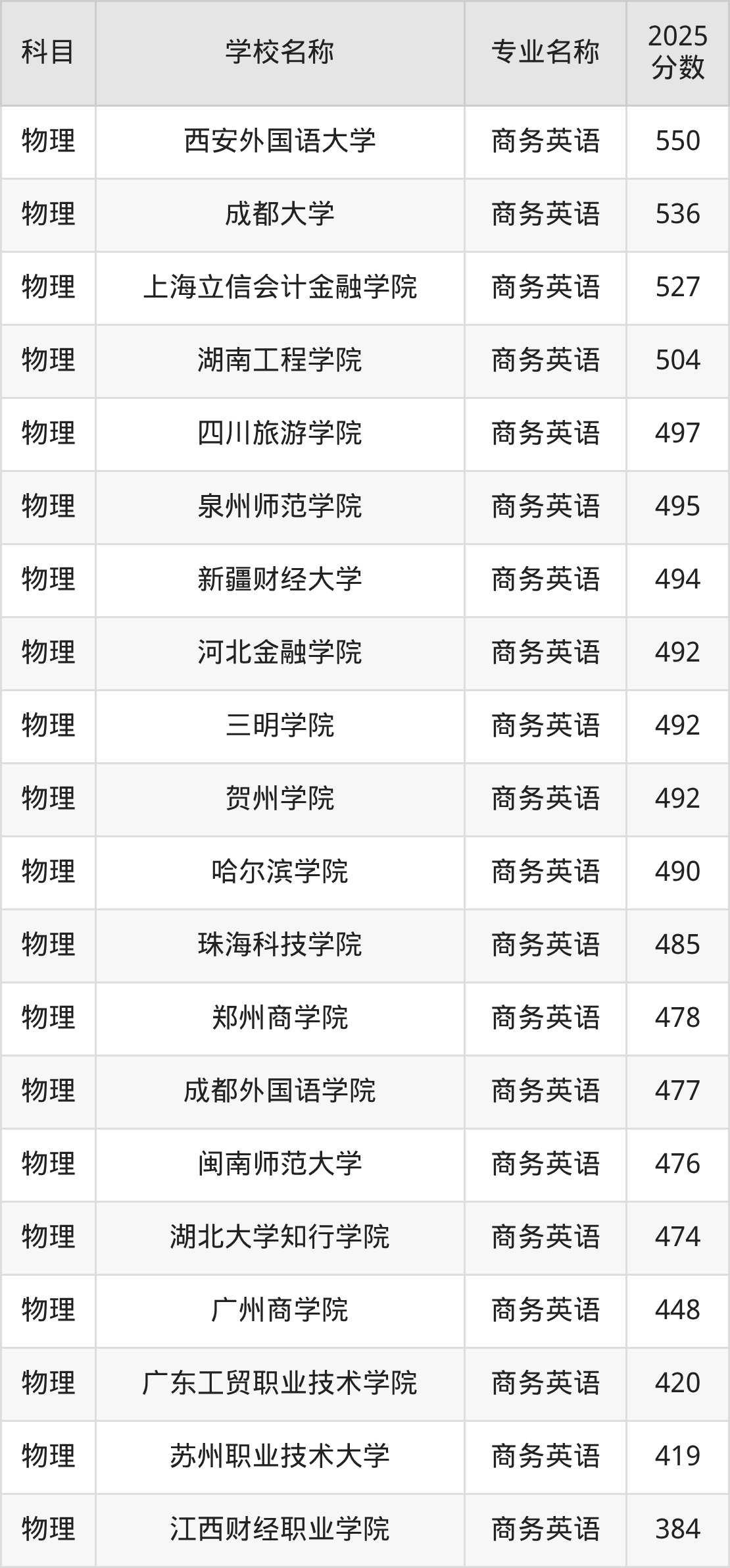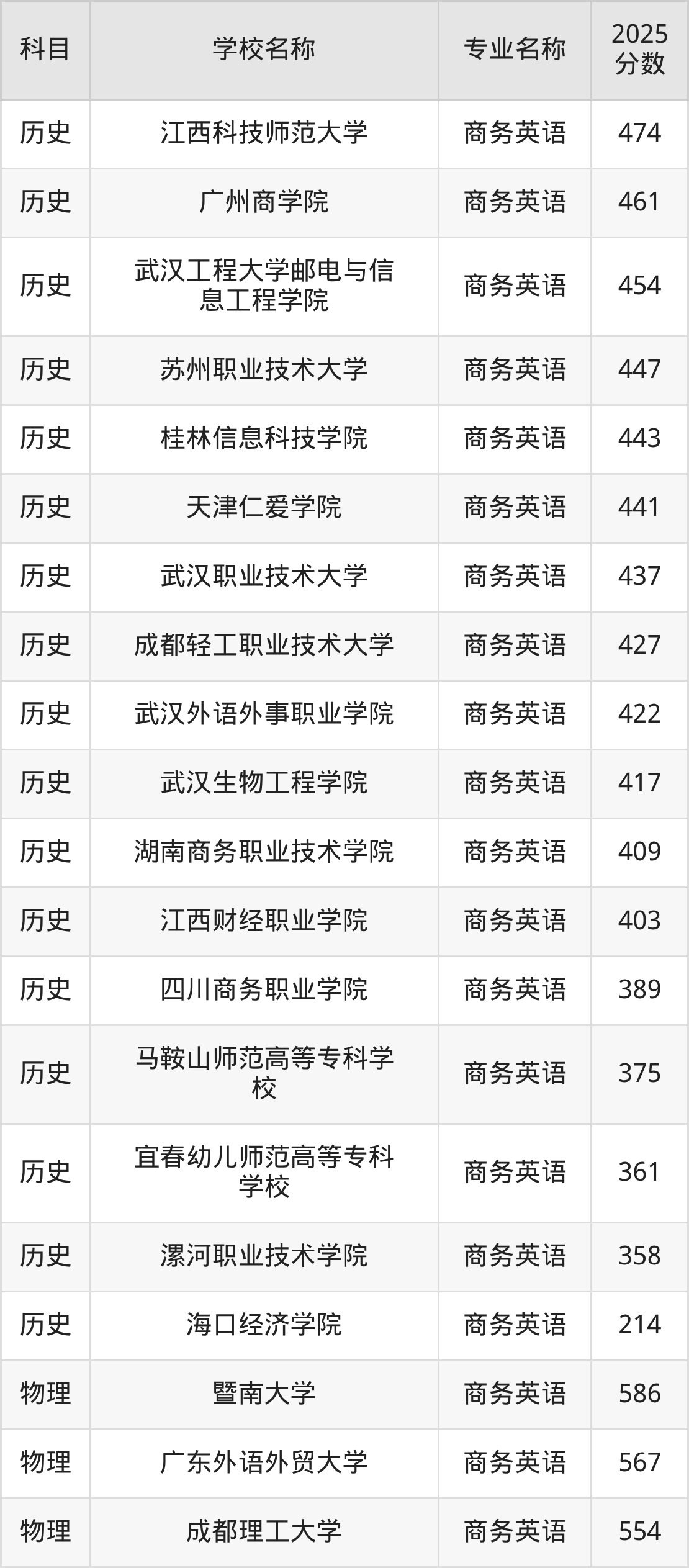 | 学校名称 | 专业名称 | 2025 分数 |