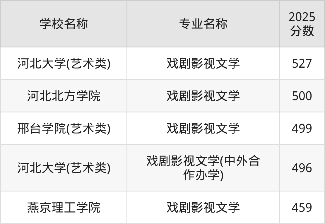 下文将为大家展示河北省大学戏剧影视文学专业2025年在河北高考的最低录取分数线!