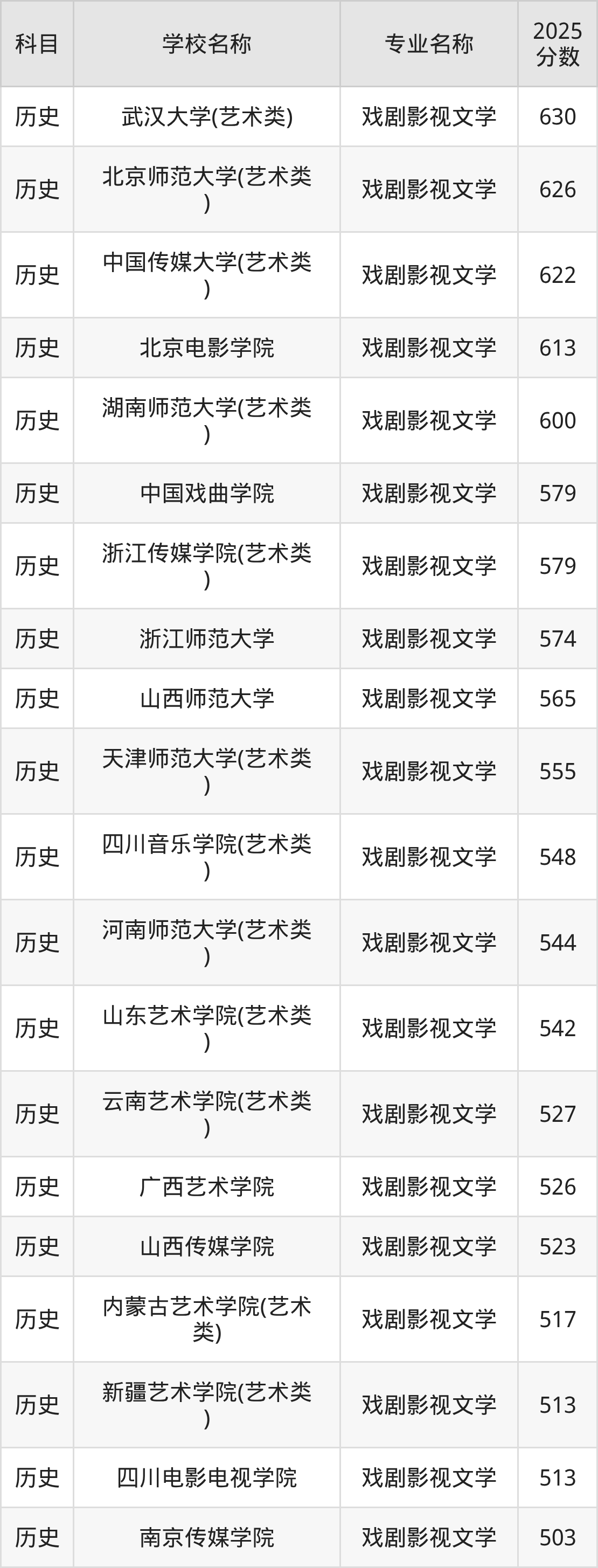河北高考历史组:戏剧影视文学专业的最低分是477分~548分