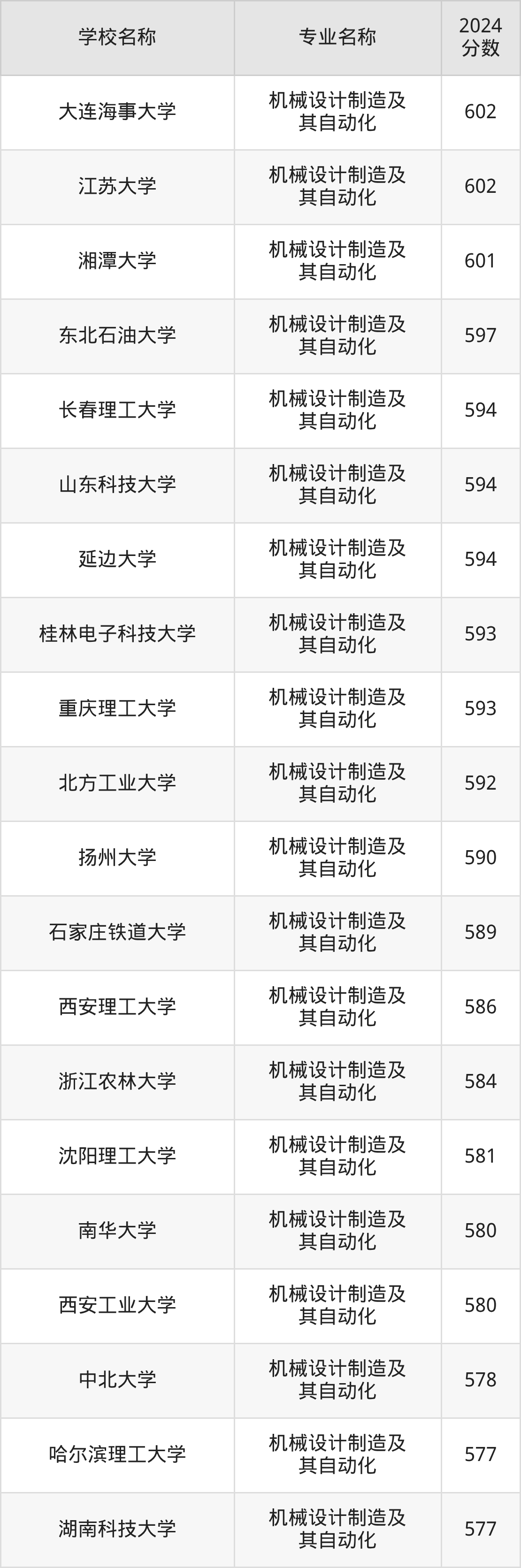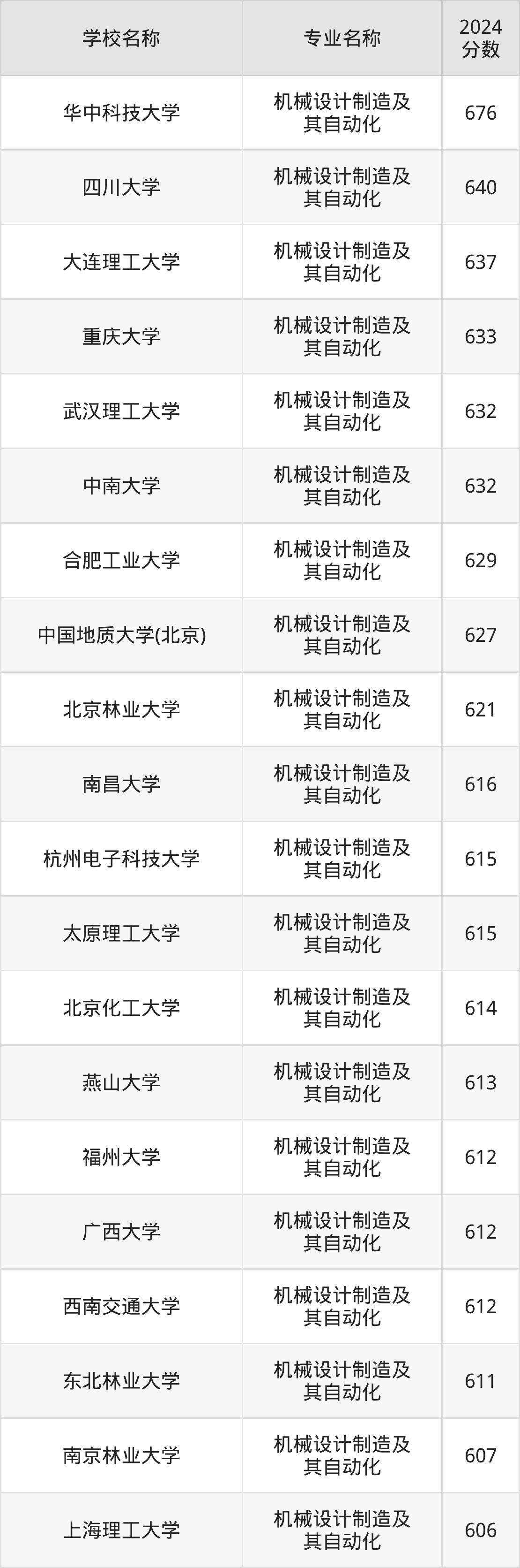 | 河北工业大学 | 机械设计制造及 其自动化 | 624 |