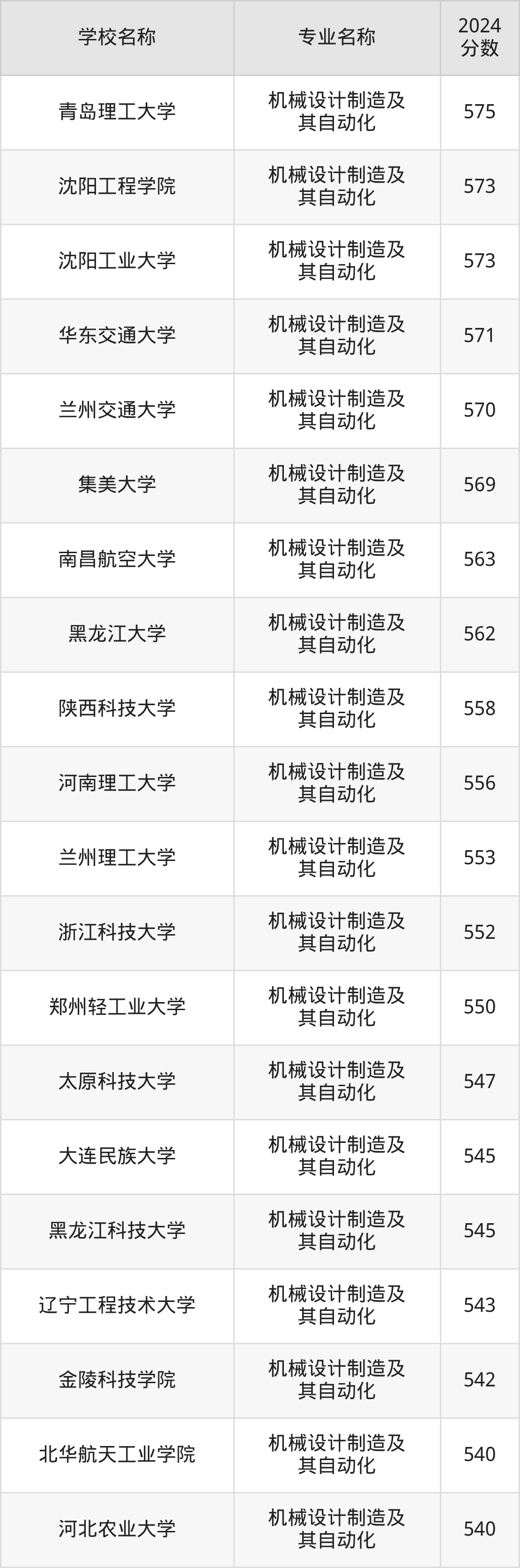 | 天津科技大学 | 机械设计制造及 其自动化 | 561 |