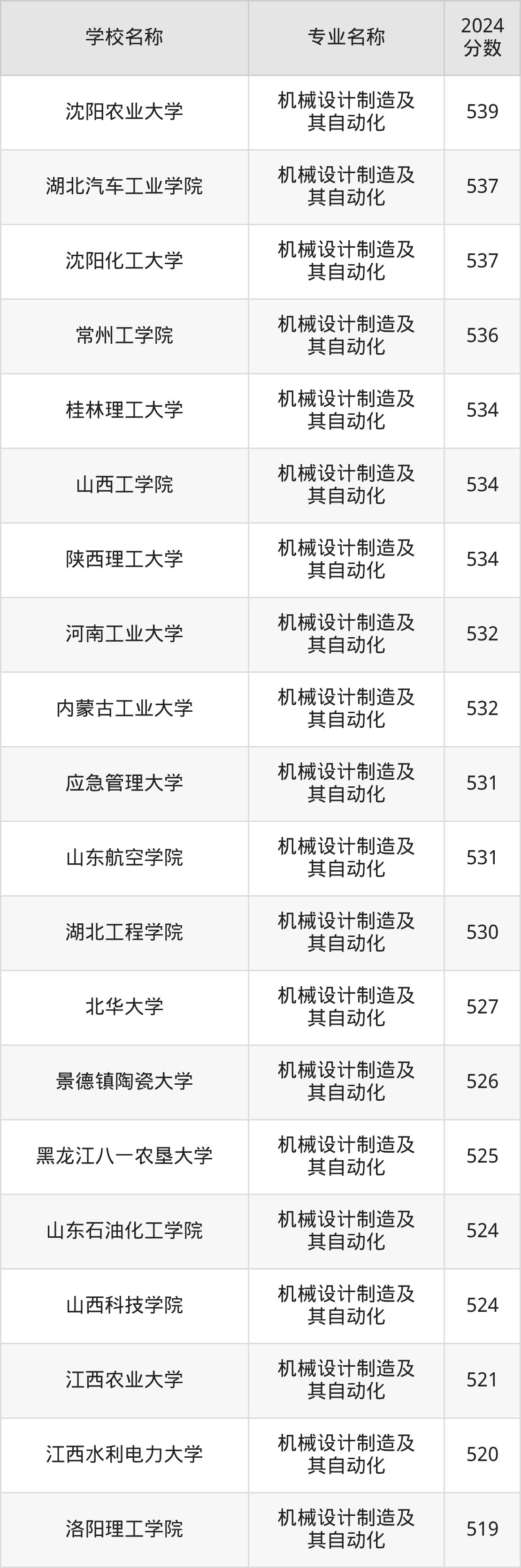 | 天津城建大学 | 机械设计制造及 其自动化 | 539 |