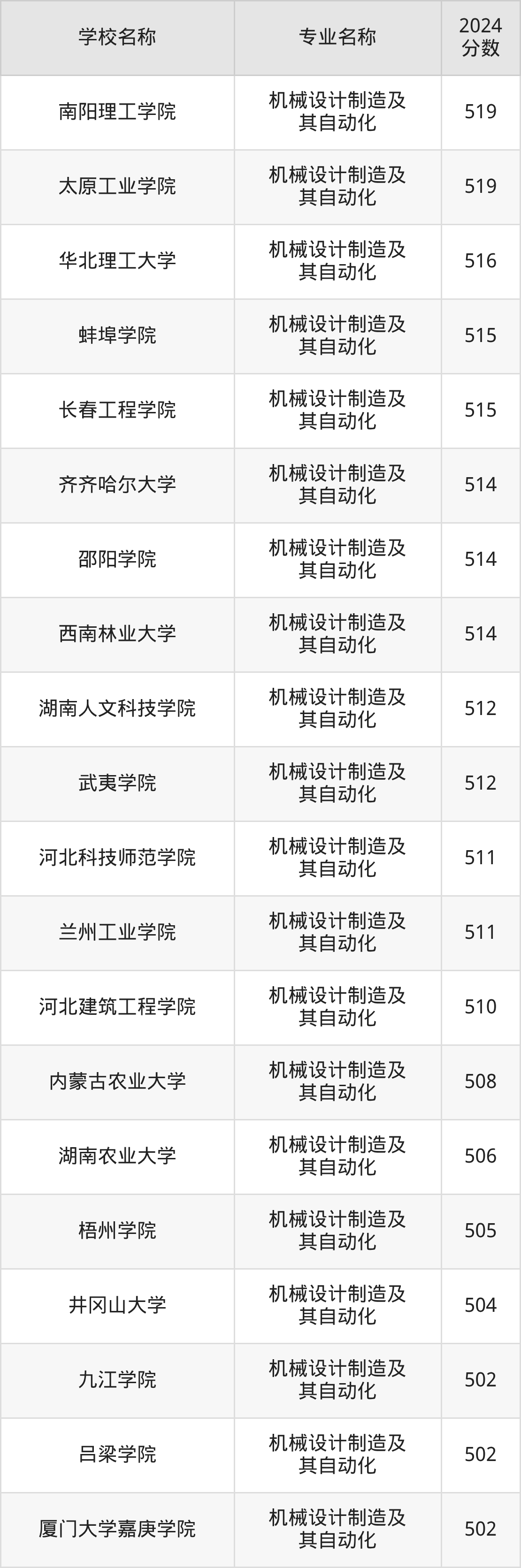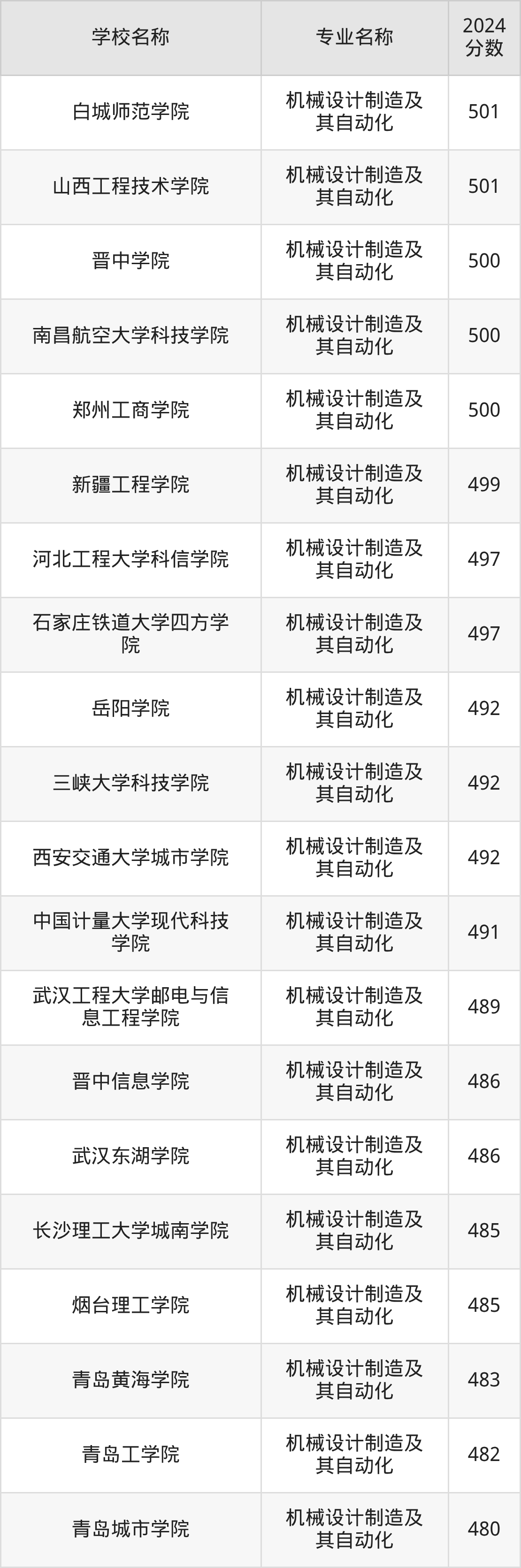 | 天津理工大学中环信息 学院 | 机械设计制造及 其自动化 | 496 |