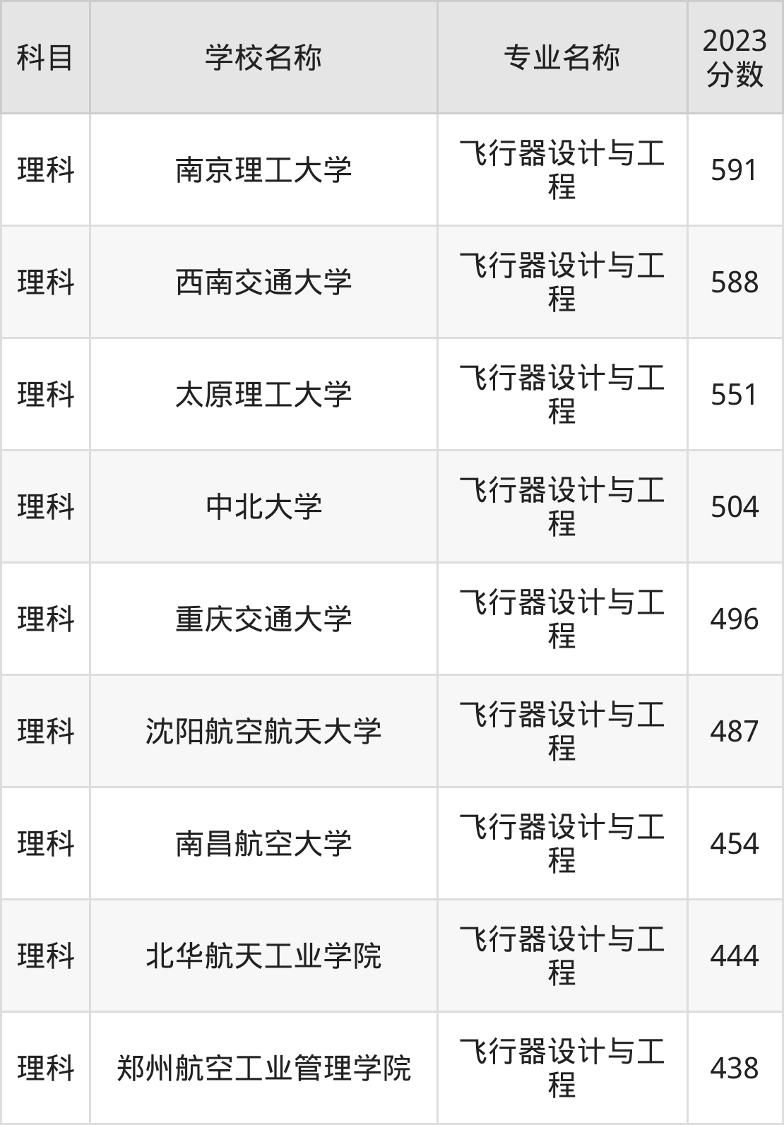 | 西安航空学院 | 飞行器设计与工 程 | 436 |