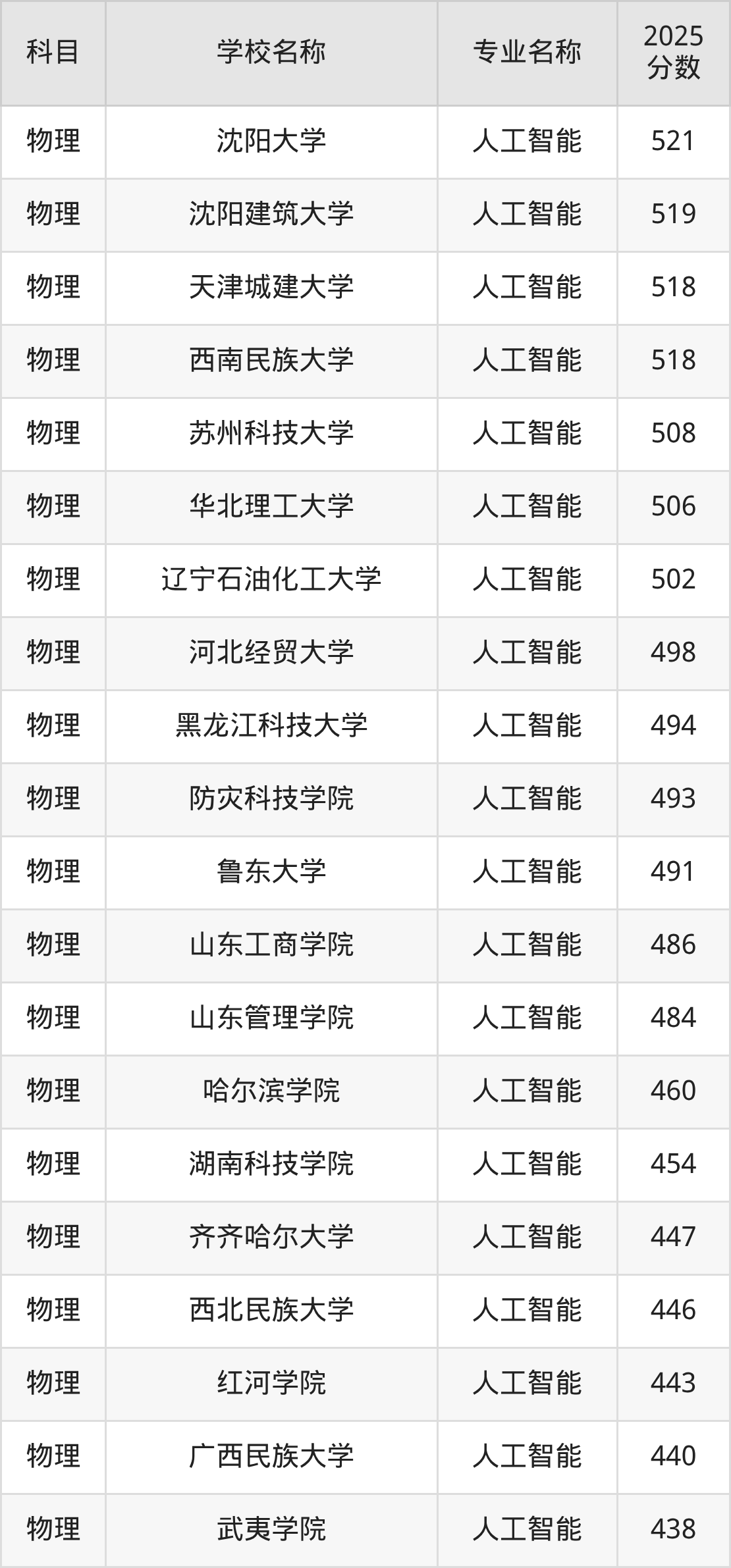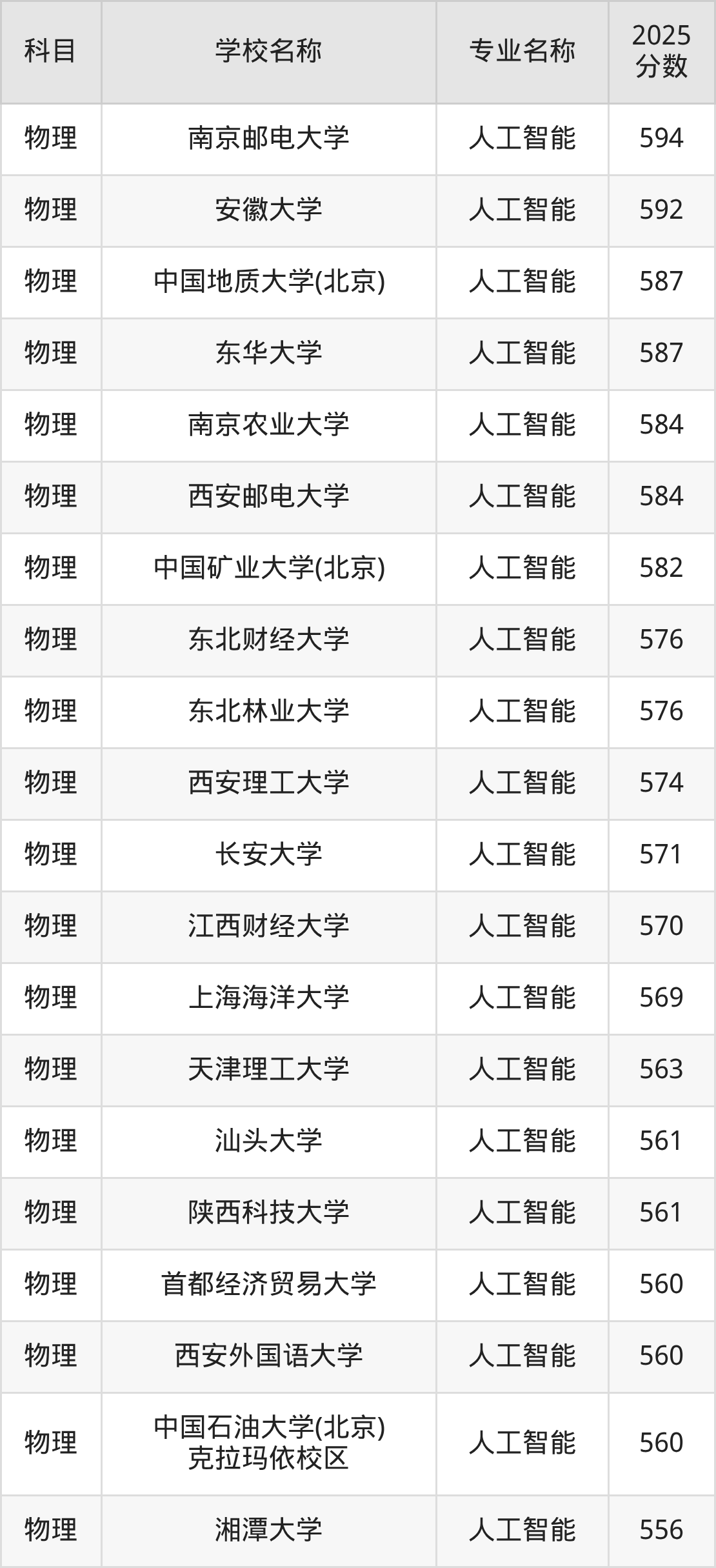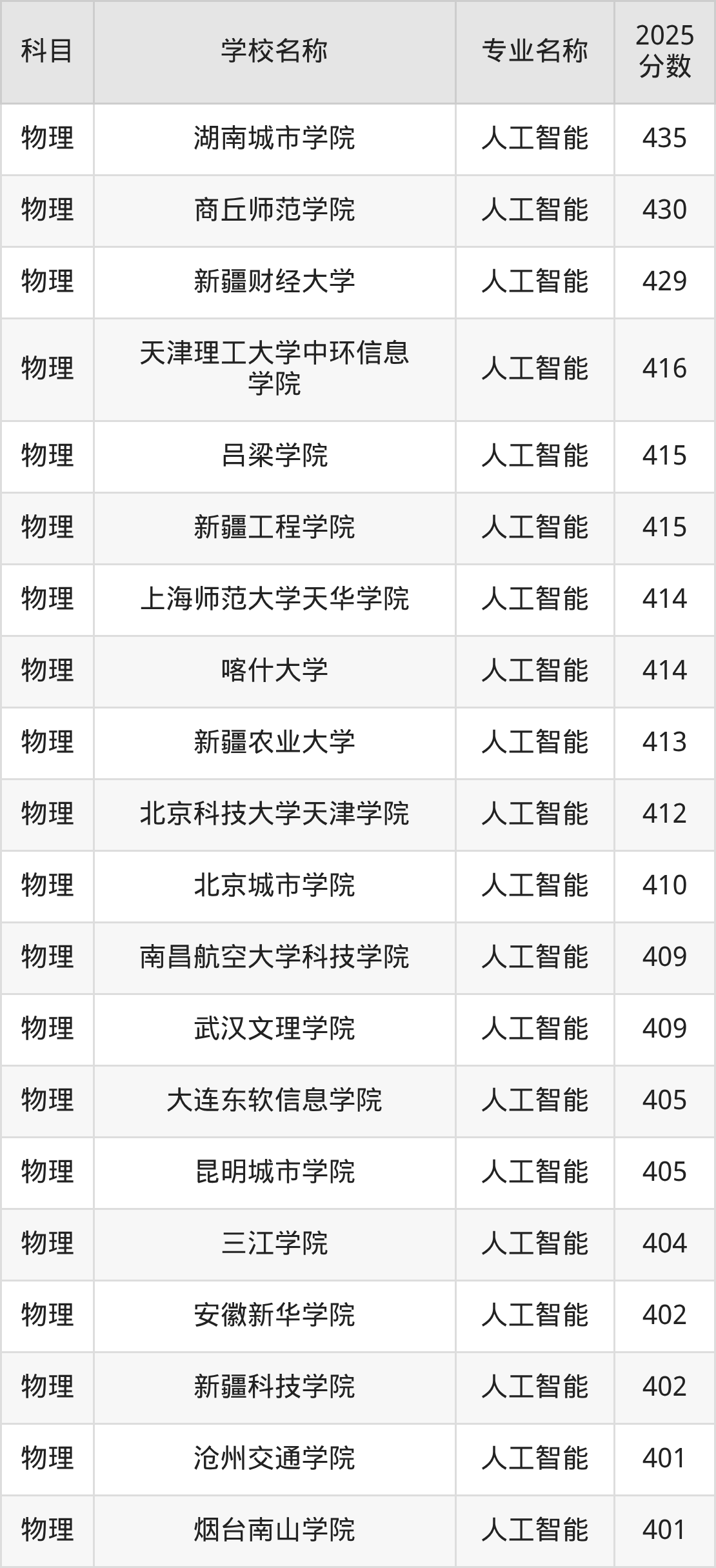 | 学校名称 | 专业名称 | 2025 分数 |