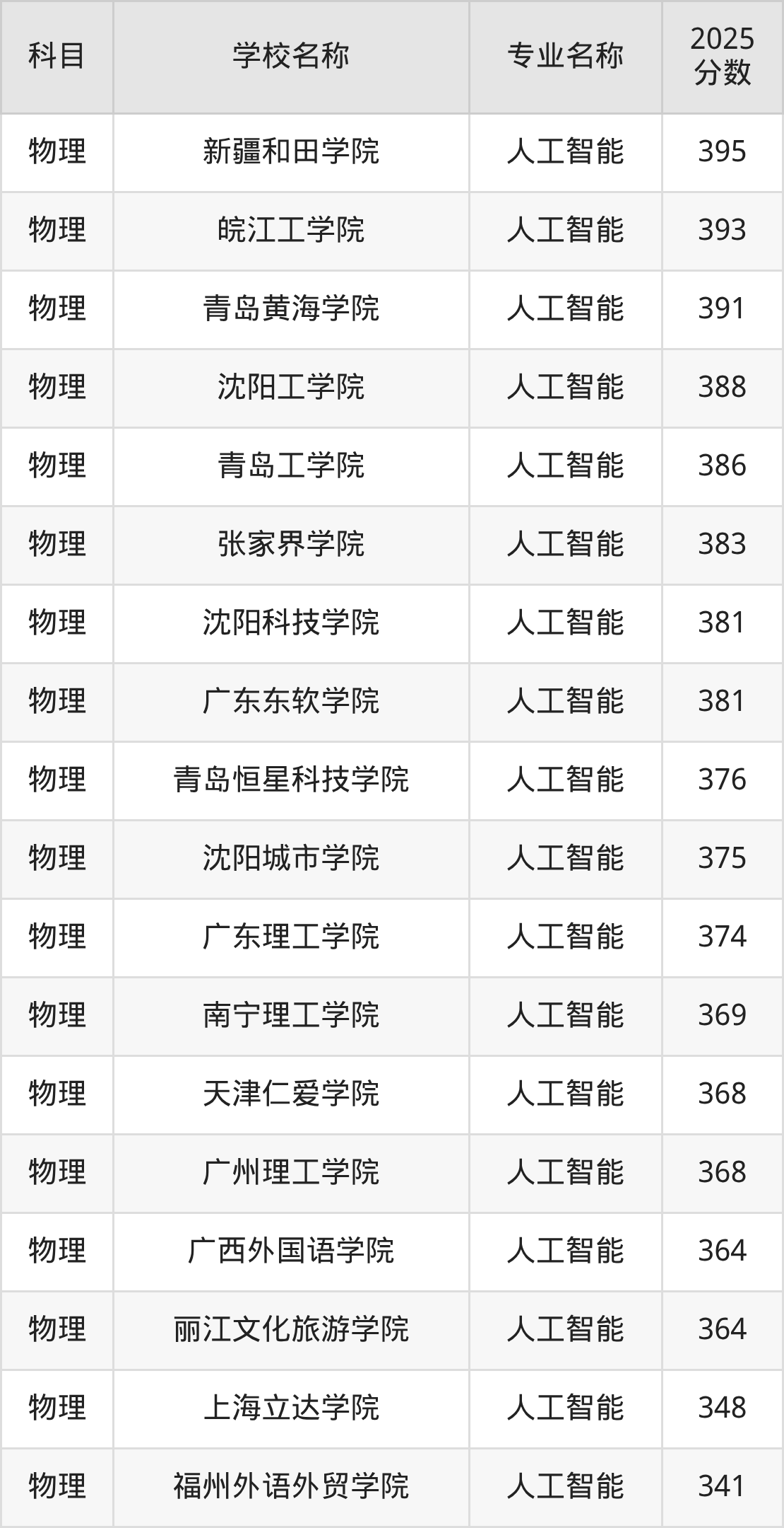 | 长春科技学院 | 人工智能 | 380 |