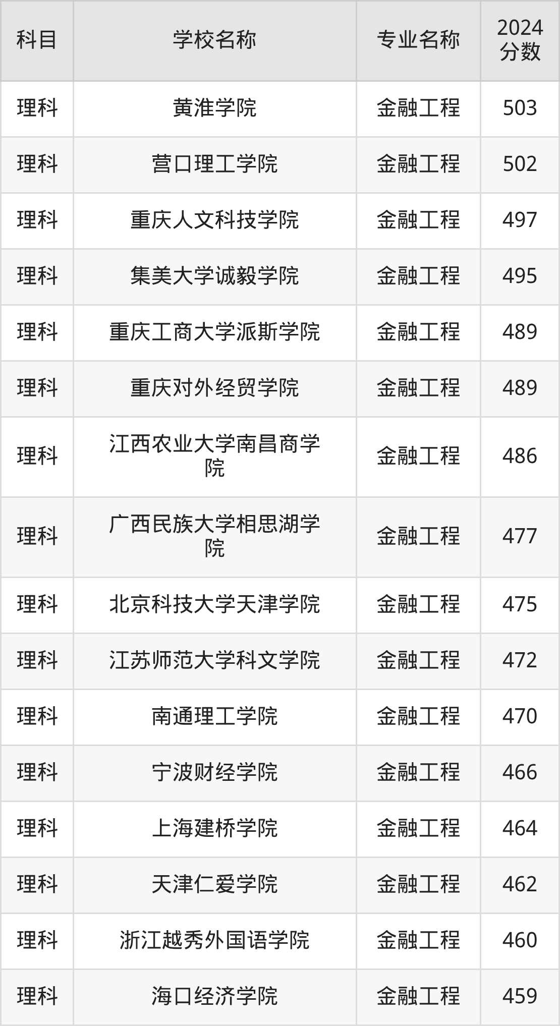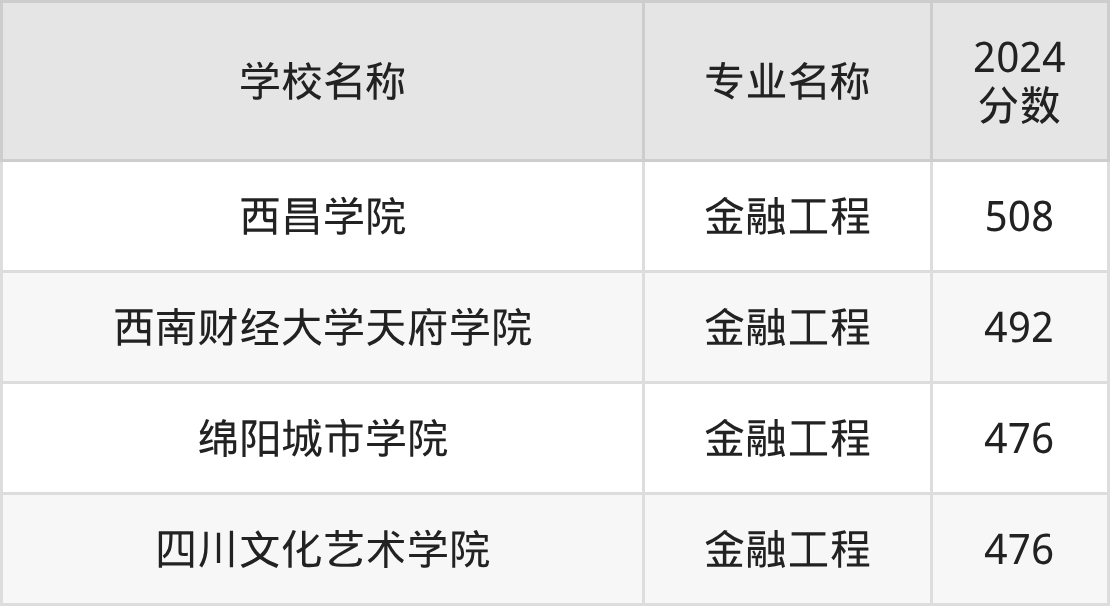 | 西南财经大学天府学院 | 金融工程 | 489 |