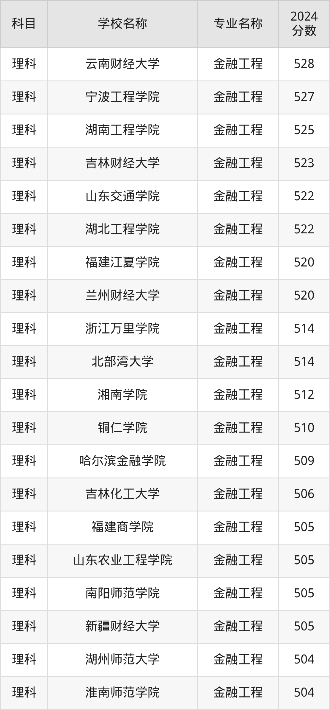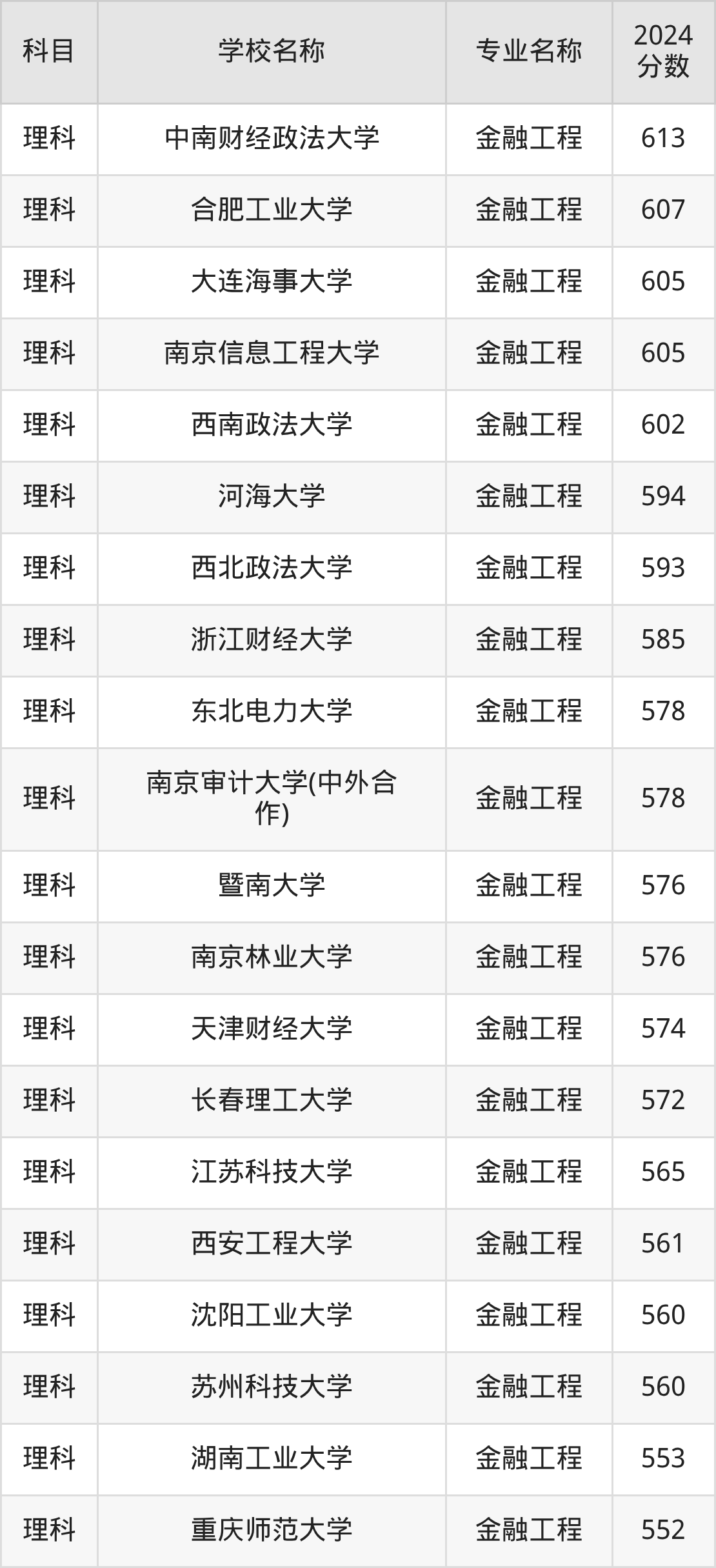 | 西南财经大学 | 金融工程 | 614 |