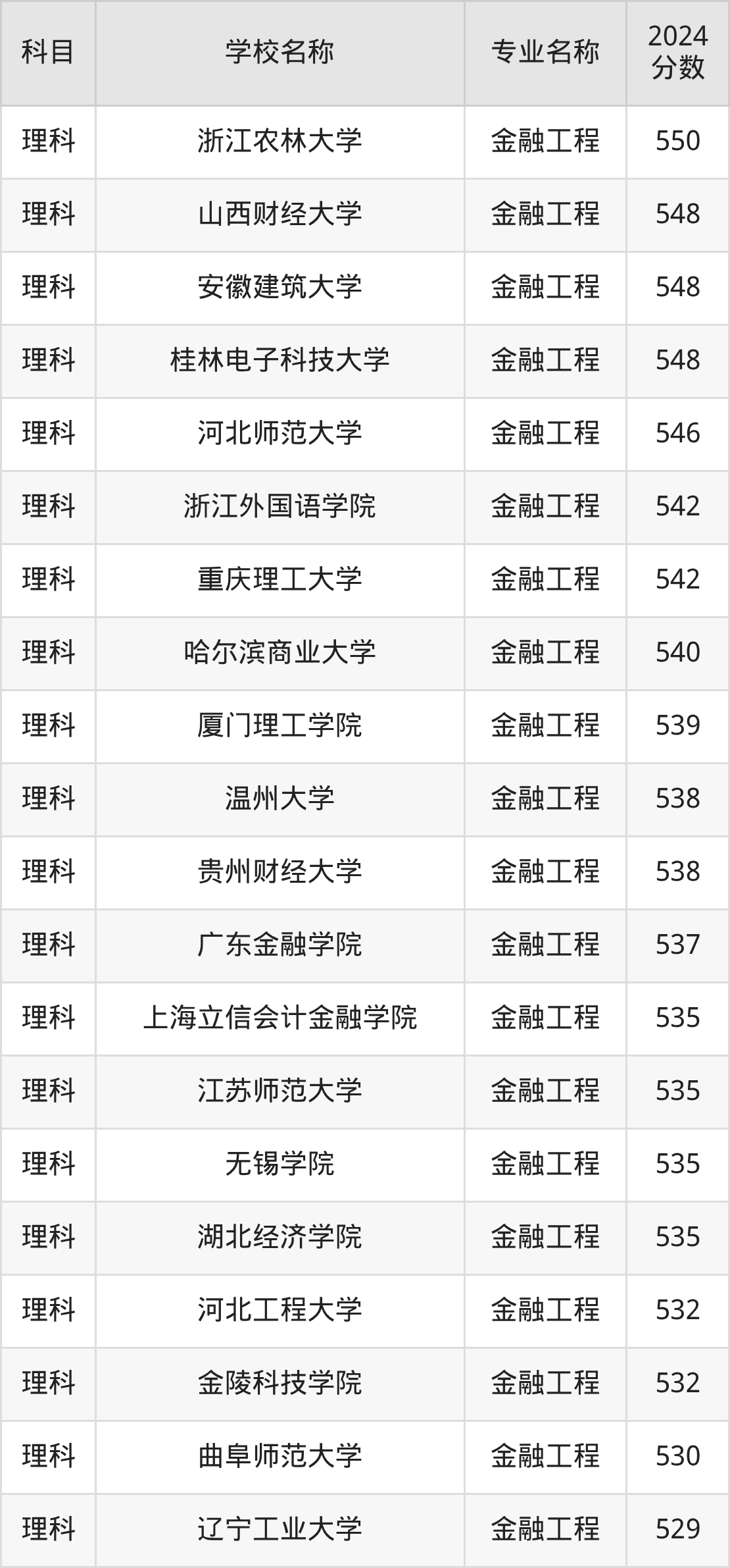 | 四川师范大学 | 金融工程(备注 :数字金融方向 培养) | 551 |