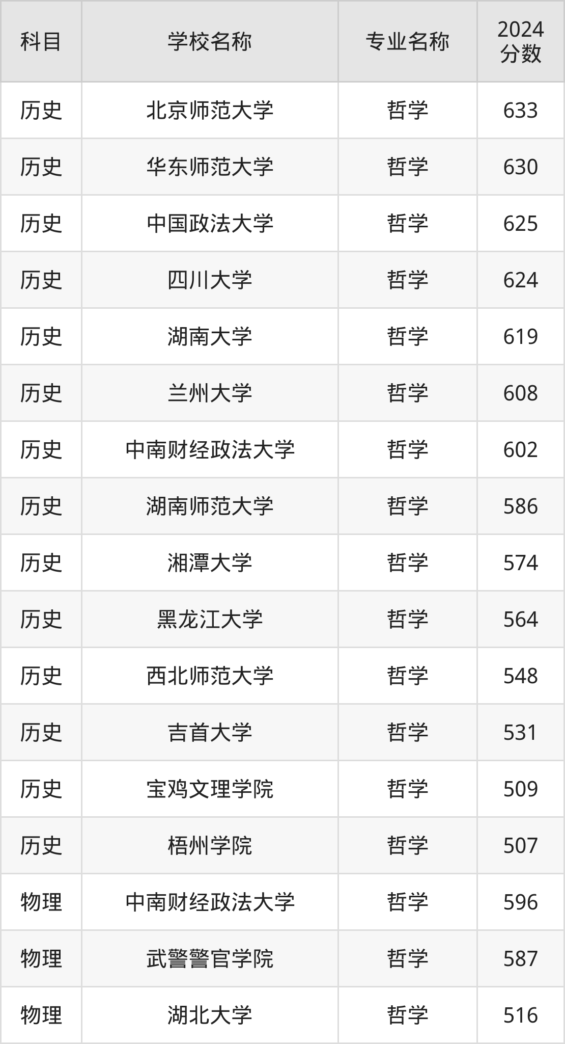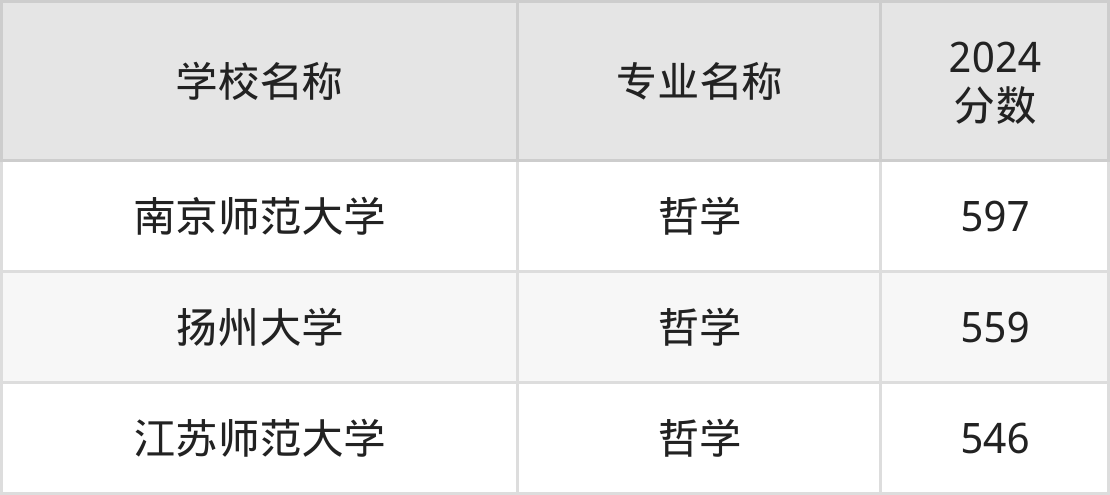 通过上文大家可以知晓,在江苏省内招哲学专业的院校数量较少,所以下文将为2025届高考生继续展示:省外大学的哲学专业2024年在江苏高考的录取情况,包含北京师范大学、华东师范大学、中国政法大学、四川大学、湖南大学。