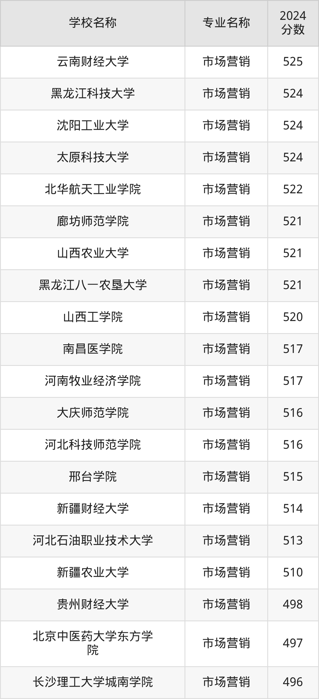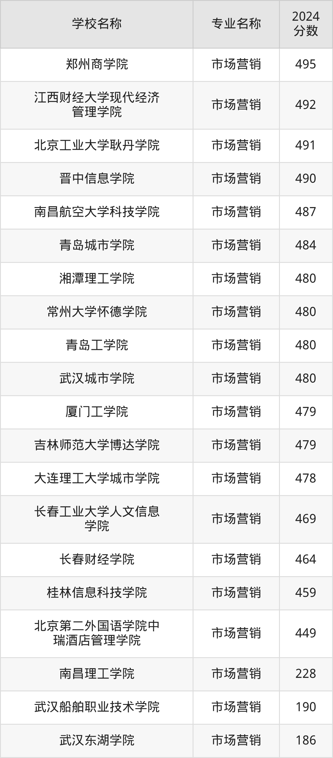 | 天津财经大学珠江学院 | 市场营销 | 492 |