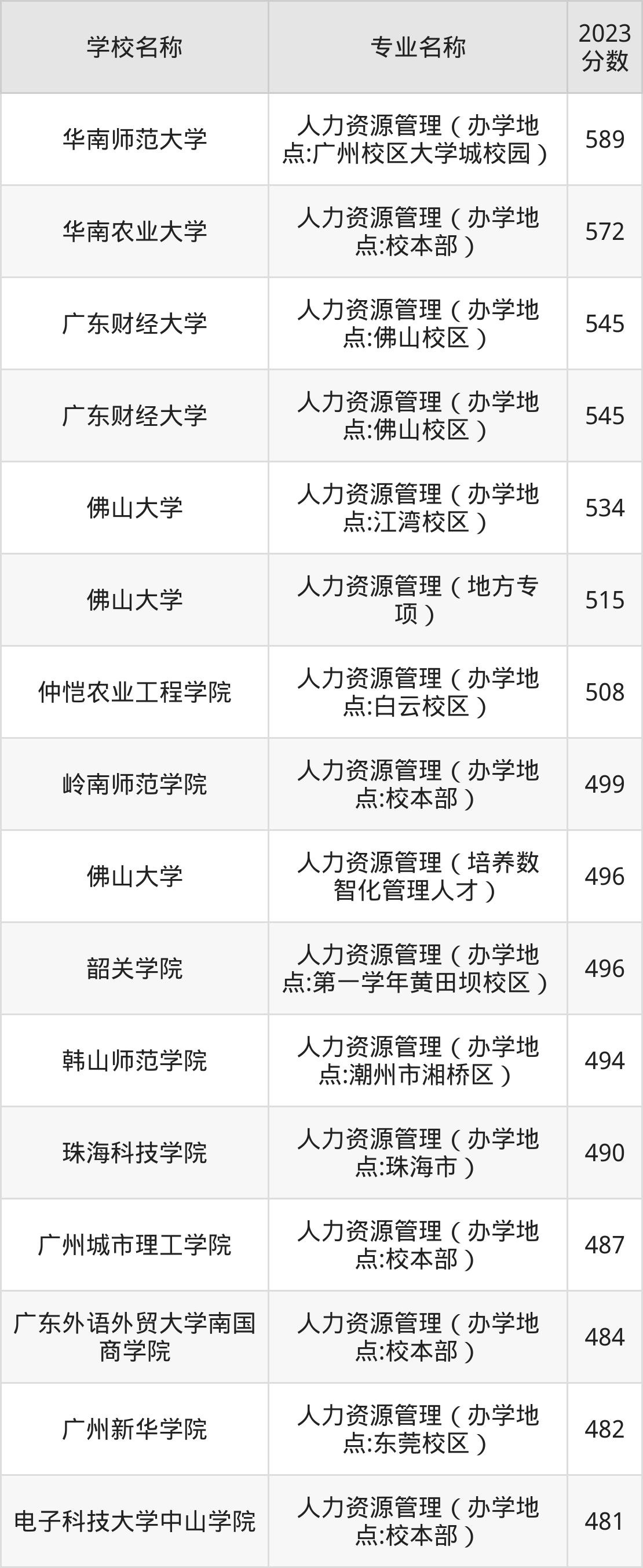下文将为大家展示广东省大学人力资源管理专业2023年在广东高考的最低录取分数线!