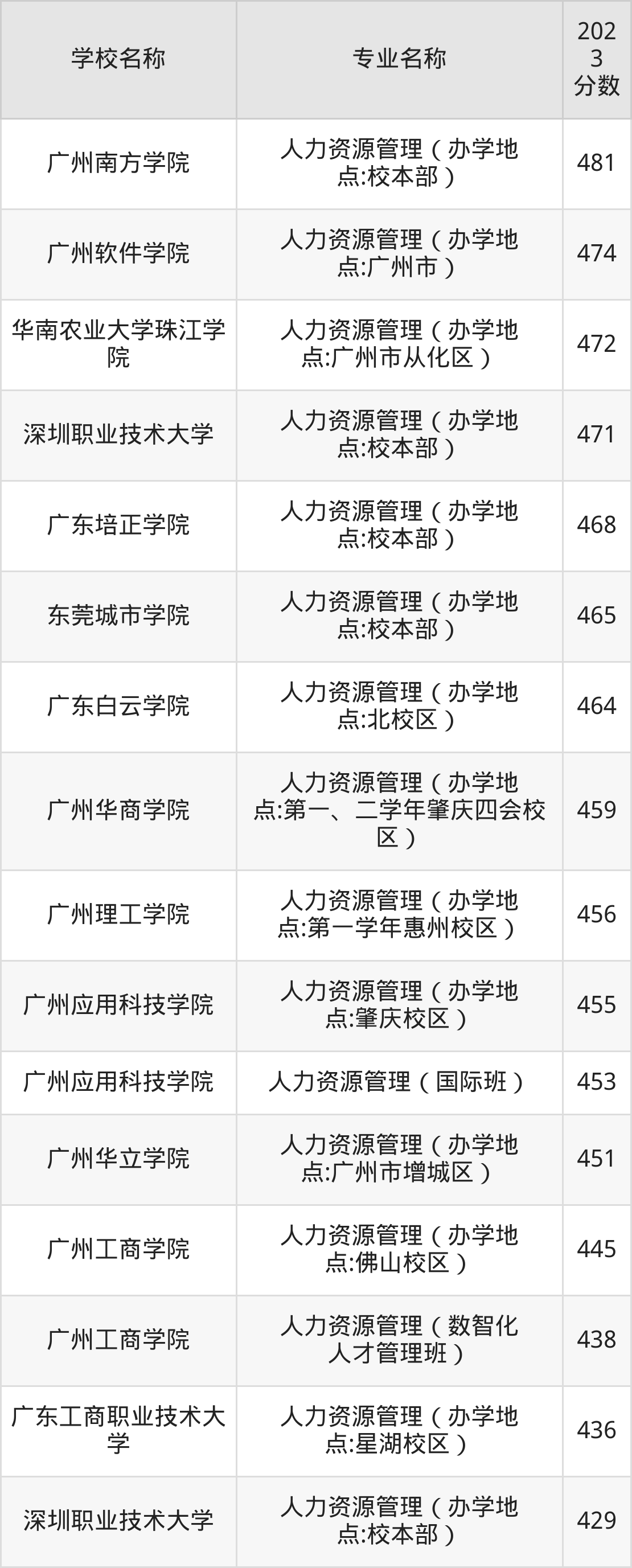 | 广州软件学院 | 人力资源管理( 办学地点:广州 市) | 465 |