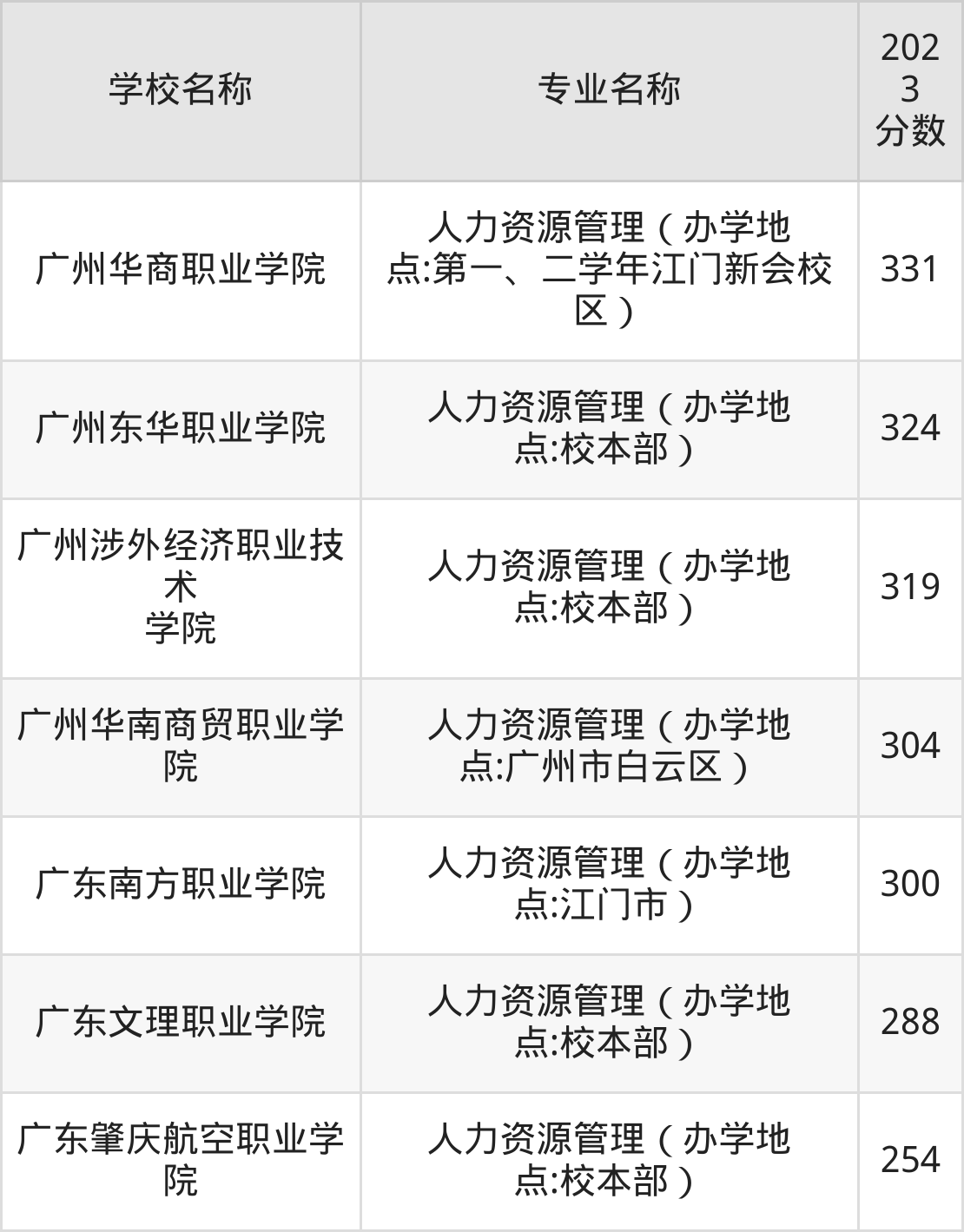| 广州华南商贸职业学院 | 人力资源管理( 办学地点:广州 市白云区) | 302 |