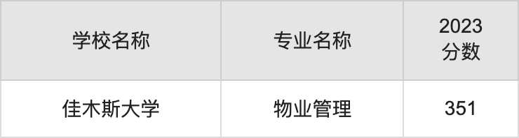 在直接以“物业管理”的名称招生的黑龙江省大学中,佳木斯大学的分数线最高、排名第一名,在文科的最低分是386分,全省排名前14672位的高考生才有较大机会被录取。