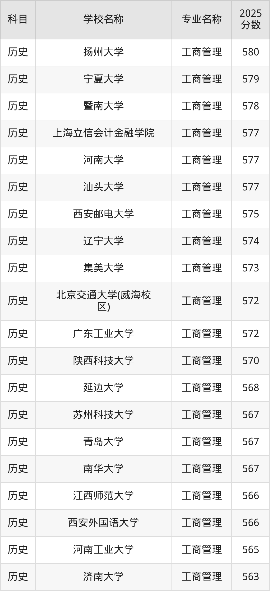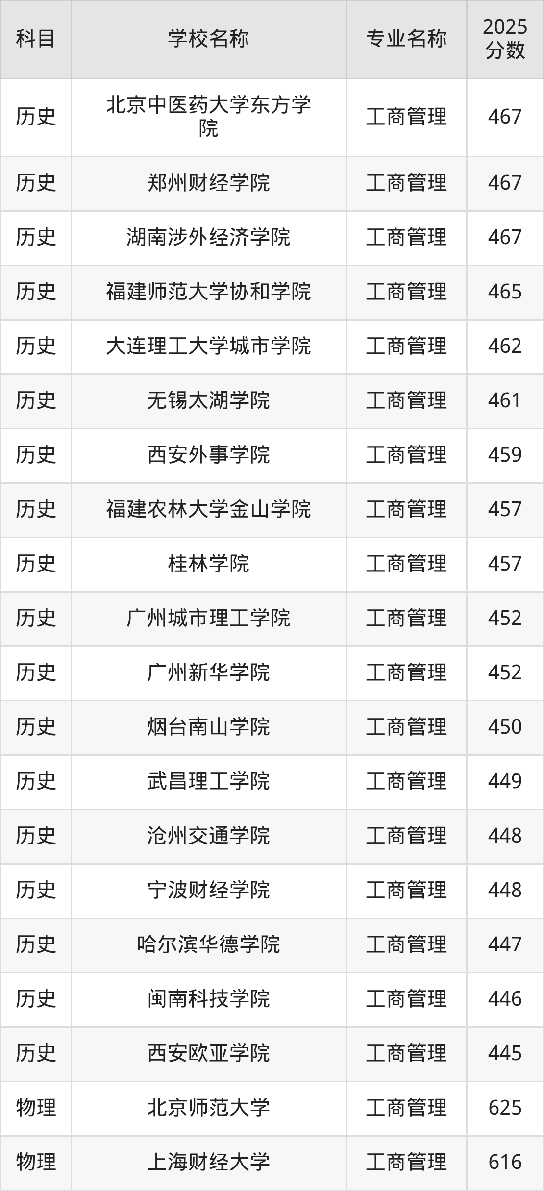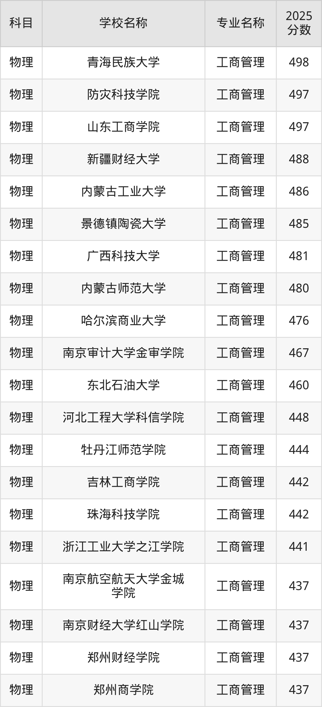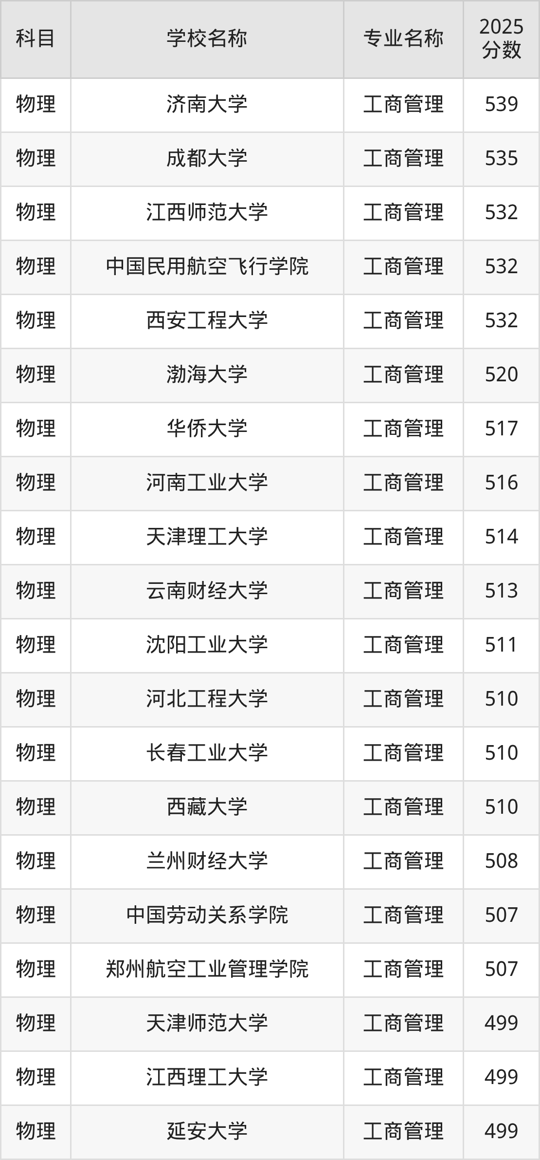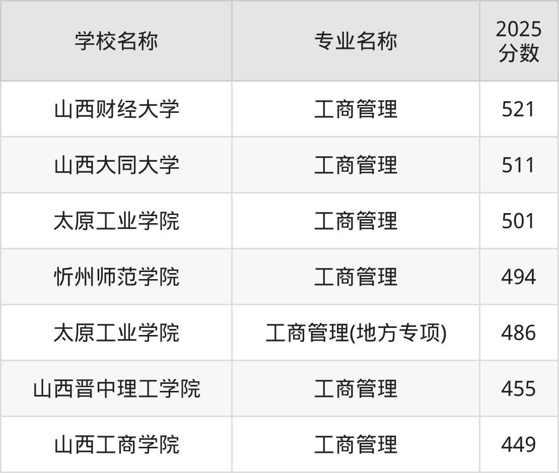 下文将为大家展示山西省大学工商管理专业2025年在山西高考的最低录取分数线!