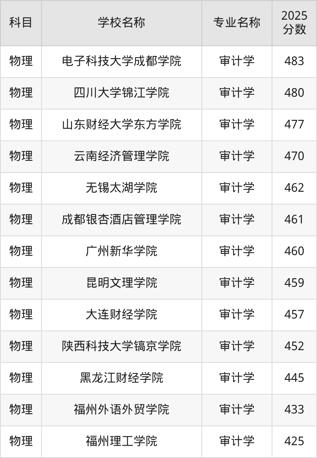 重庆高考物理组:审计学专业的最低分是471分~545分