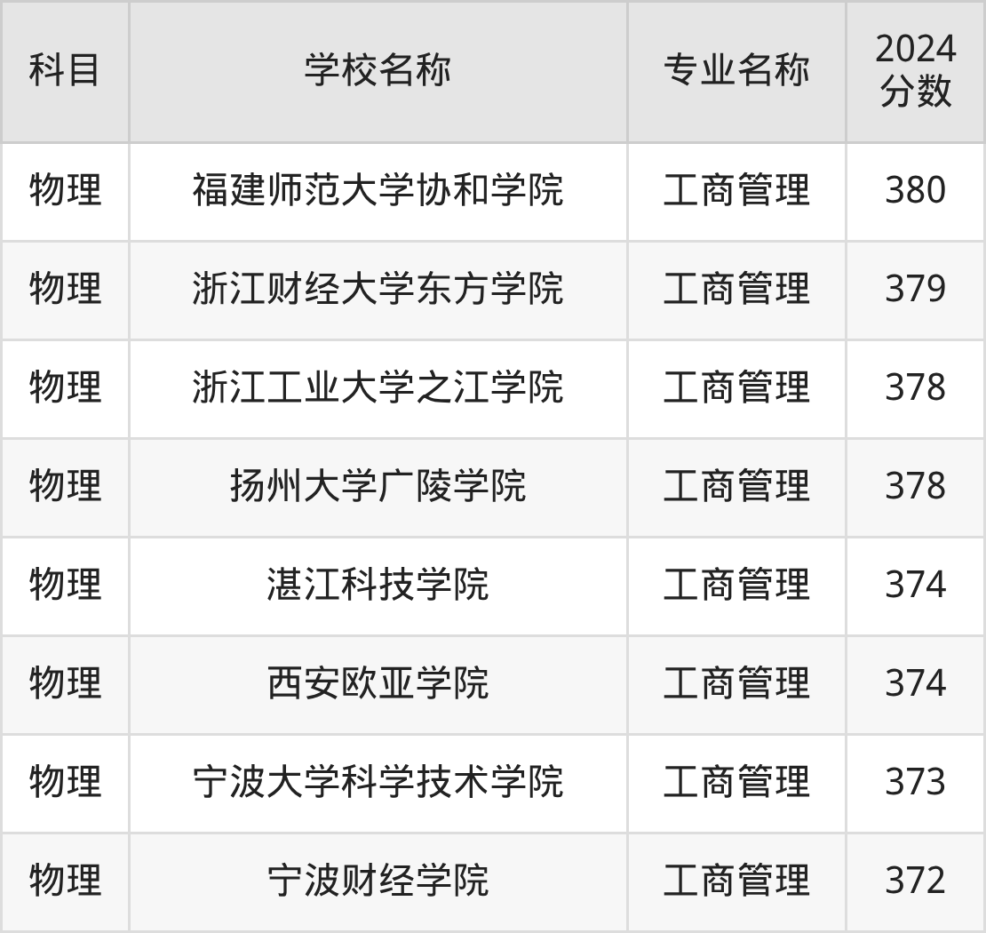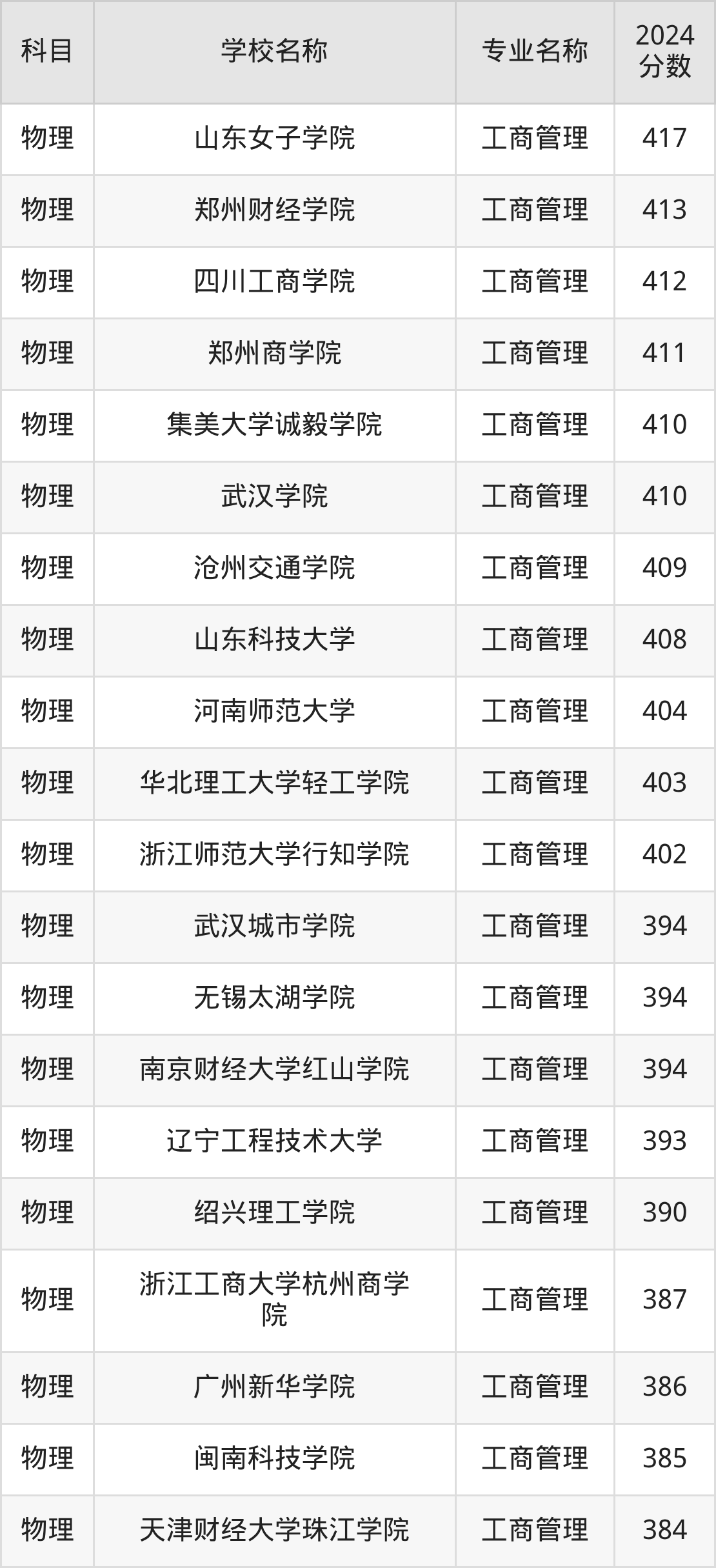 广西高考物理组:工商管理专业的最低分是377分~566分