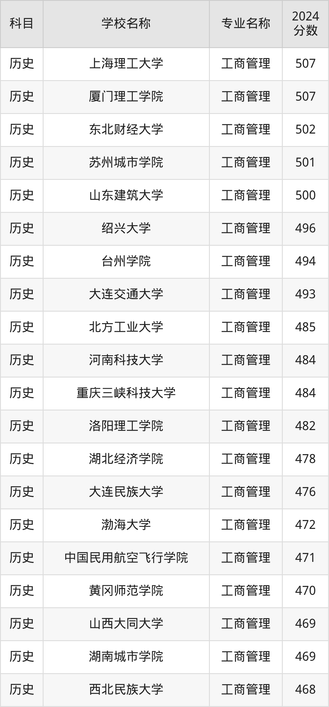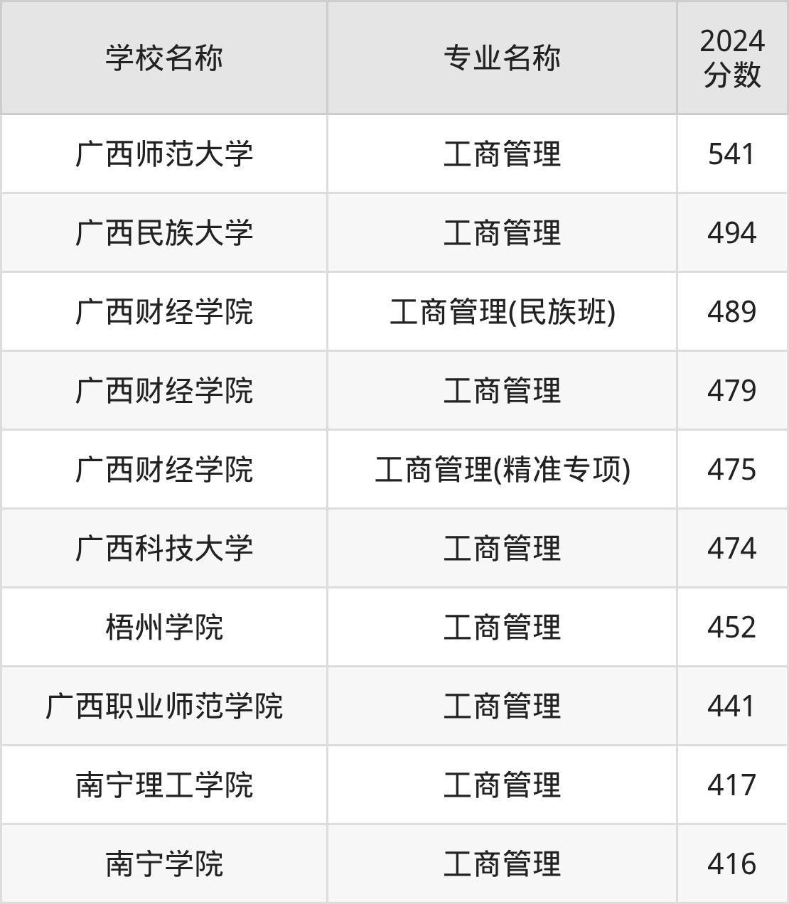 下文将为大家展示广西壮族自治区大学工商管理专业2024年在广西高考的最低录取分数线!