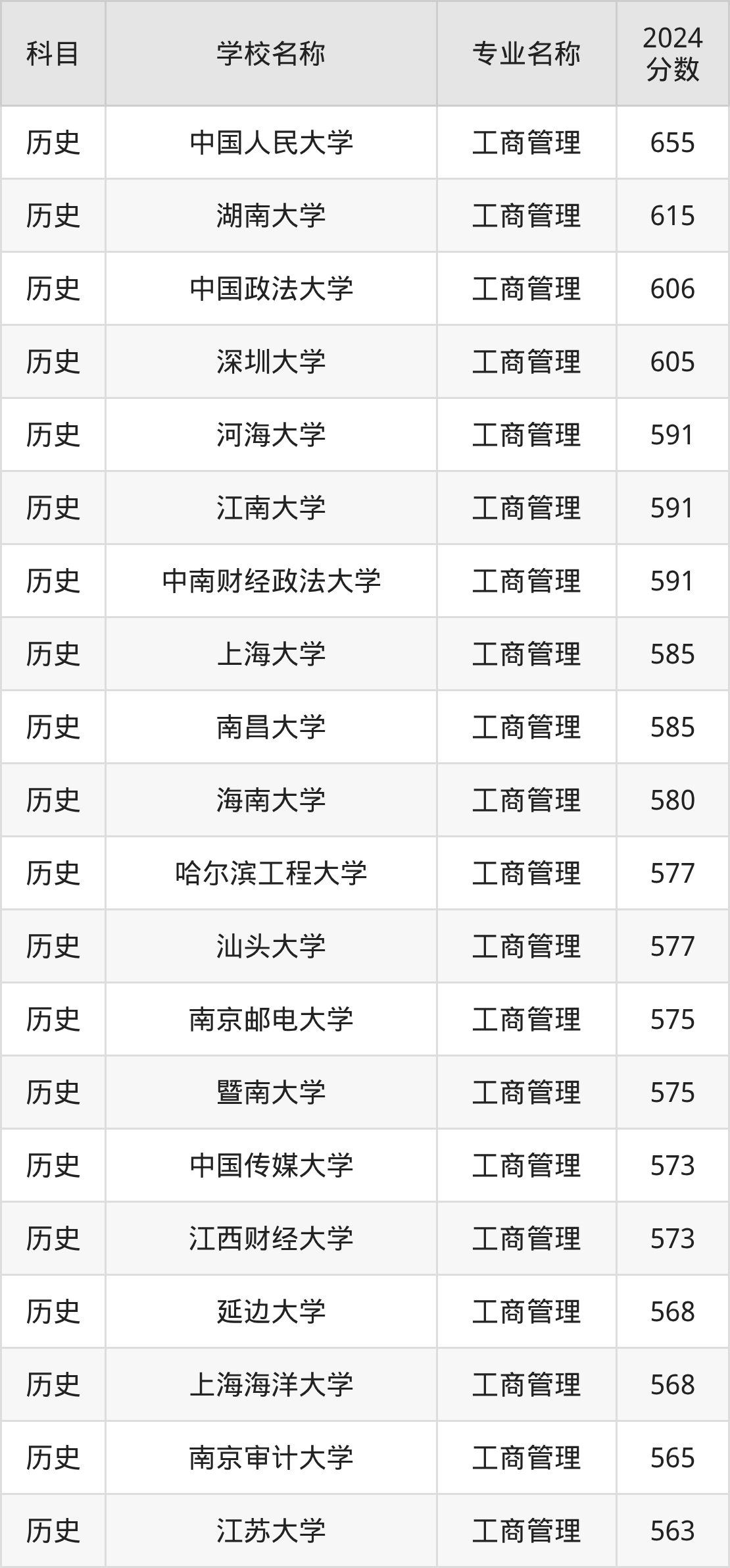 通过上文大家可以知晓,在广西壮族自治区内招工商管理专业的院校数量较少,所以下文将为2026届高考生继续展示:壮族自治区外大学的工商管理专业2024年在广西高考的录取情况,包含中国人民大学、湖南大学、中国政法大学、深圳大学、河海大学。