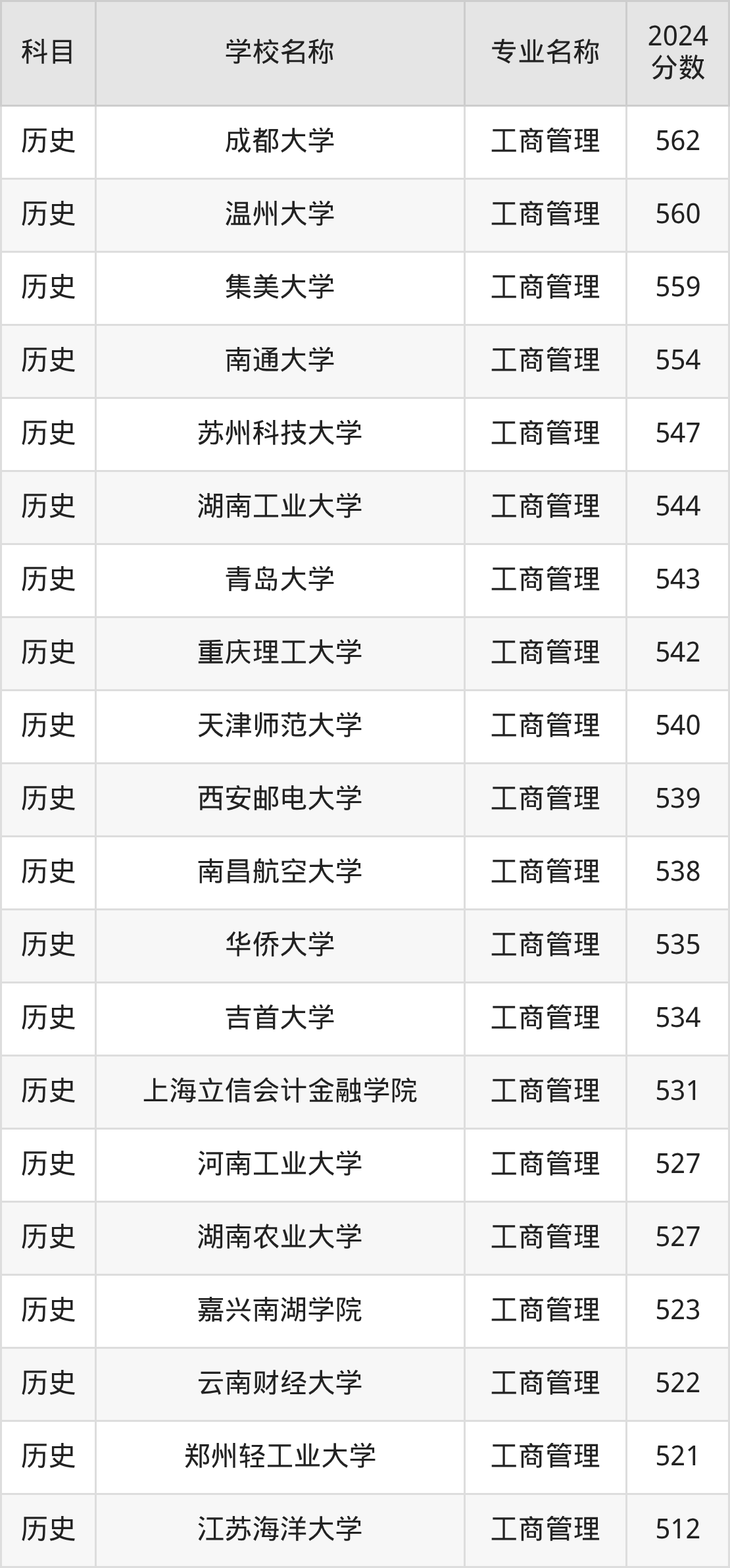 | 广西大学 | 工商管理(地方 专项计划) | 561 |