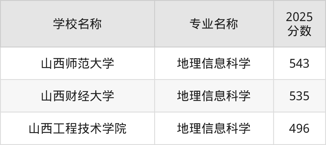 下文将为大家展示山西省大学地理信息科学专业2025年在山西高考的最低录取分数线!