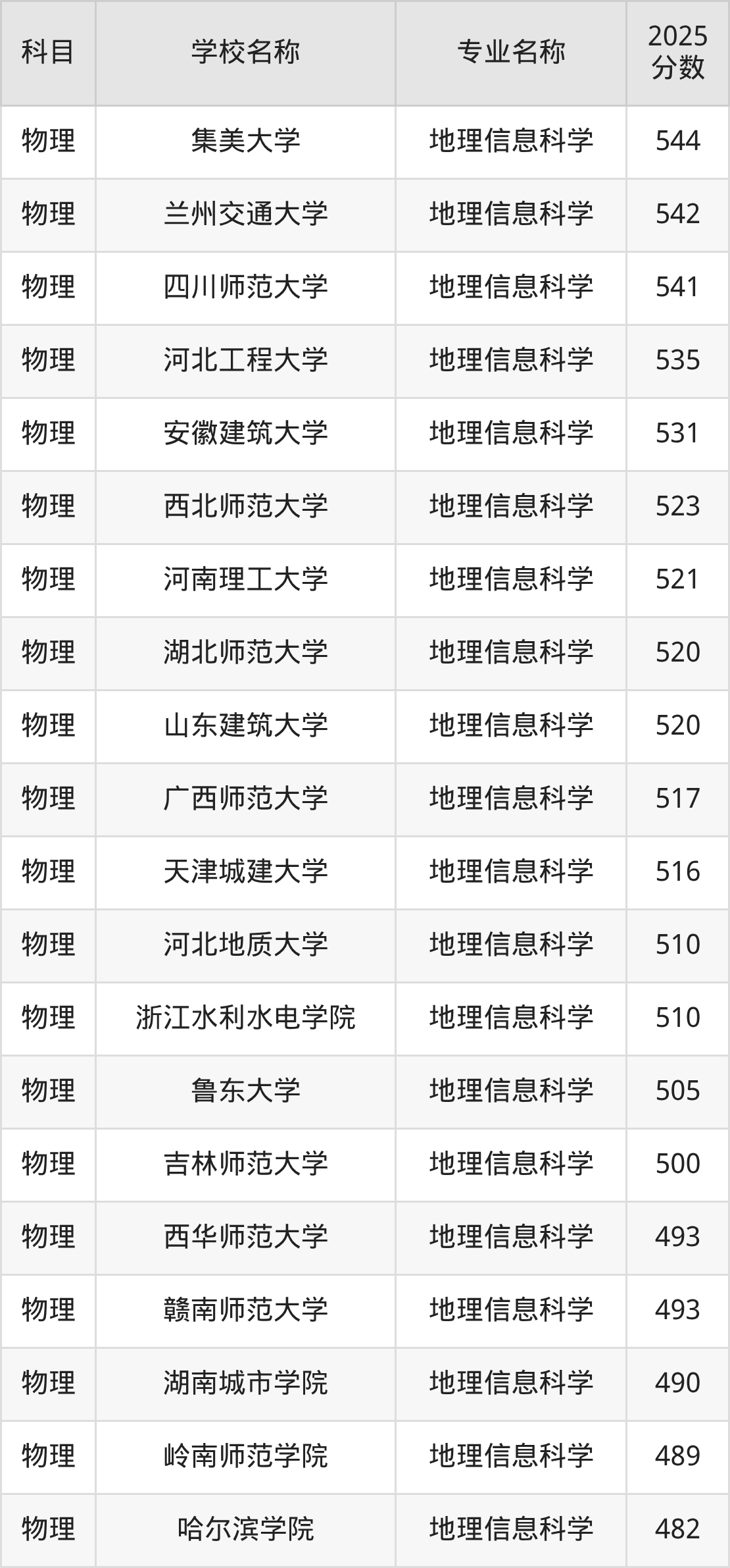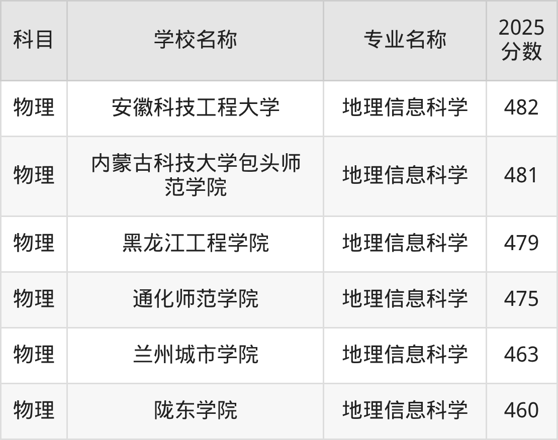 山西高考物理组:地理信息科学专业的最低分是471分~504分
