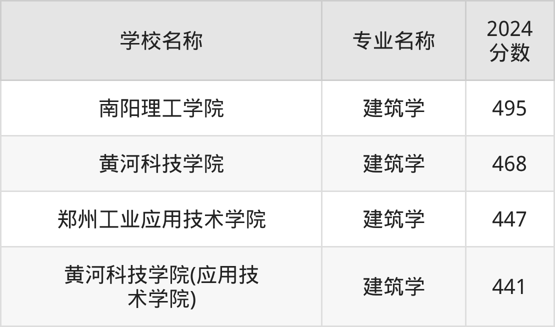 | 黄河科技学院 | 建筑学 | 451 |