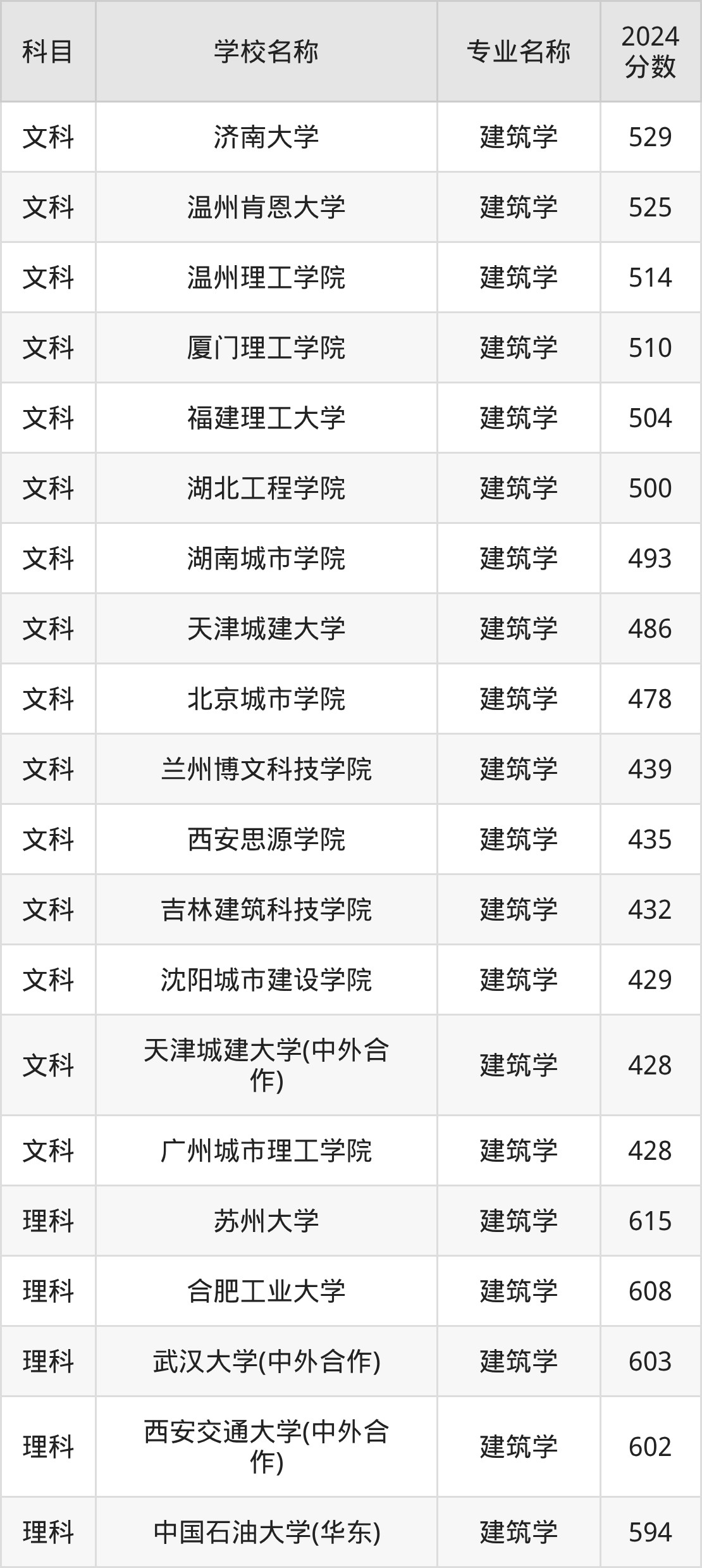 | 郑州大学 | 建筑学 | 602 |