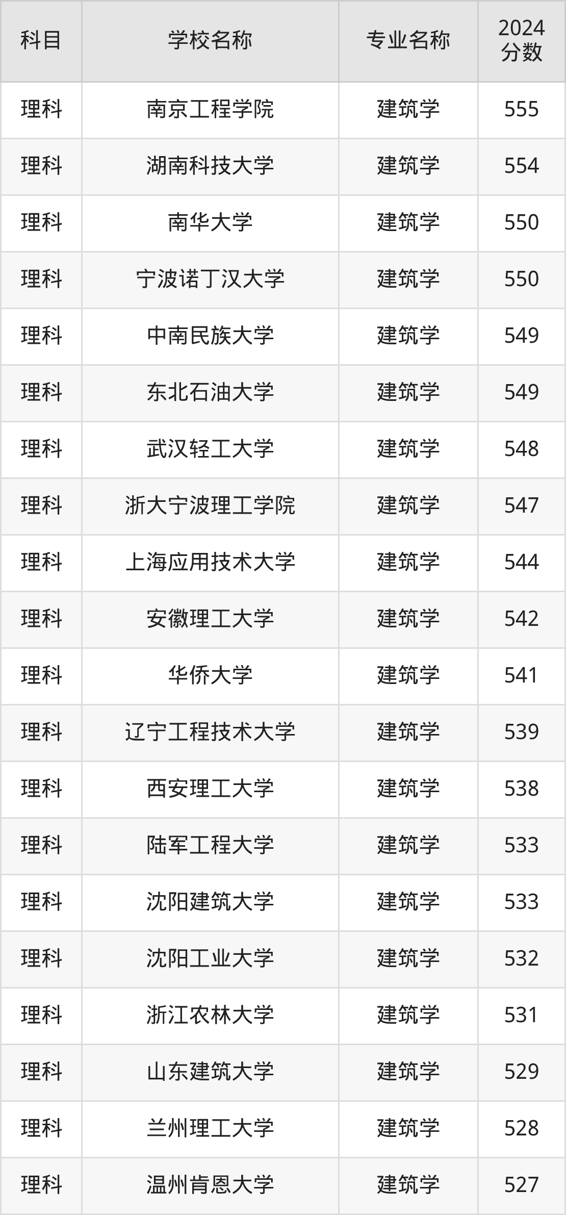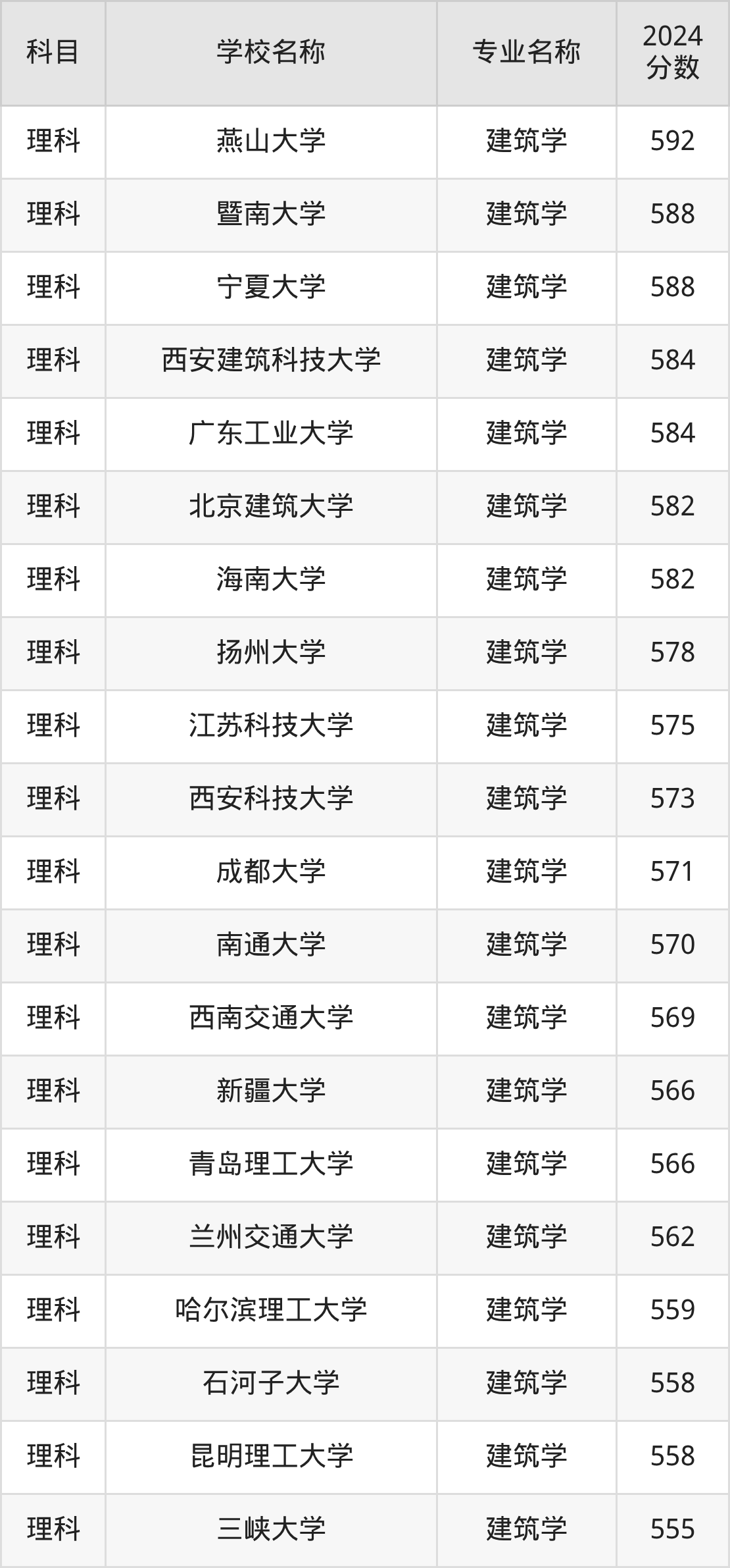 | 河南大学 | 建筑学 | 583 |