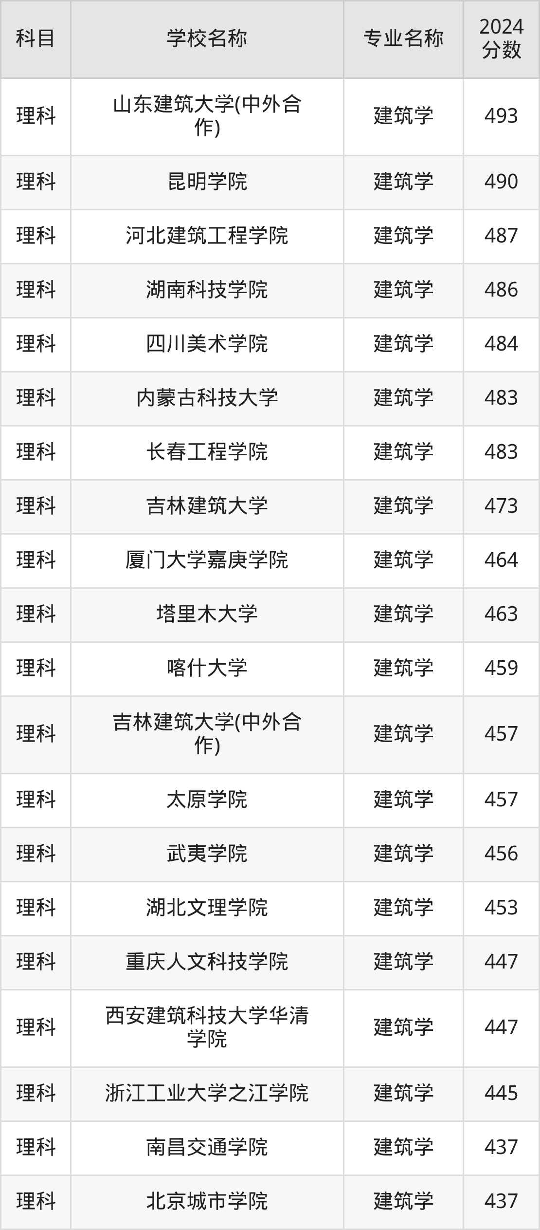 | 学校名称 | 专业名称 | 2024 分数 |