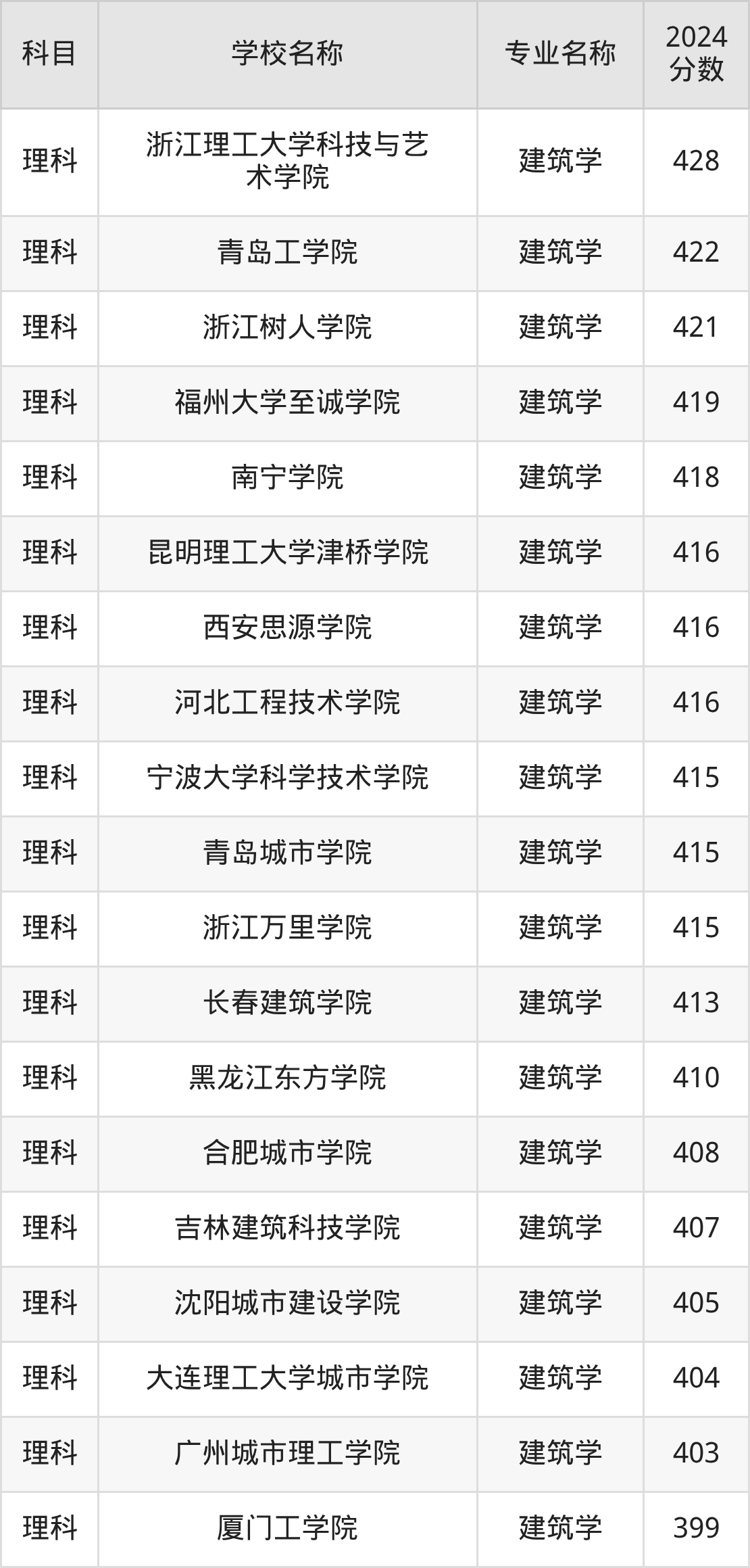 | 郑州升达经贸管理学院 | 建筑学 | 443 |
