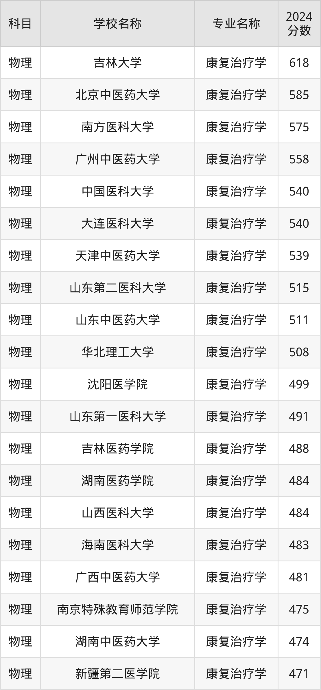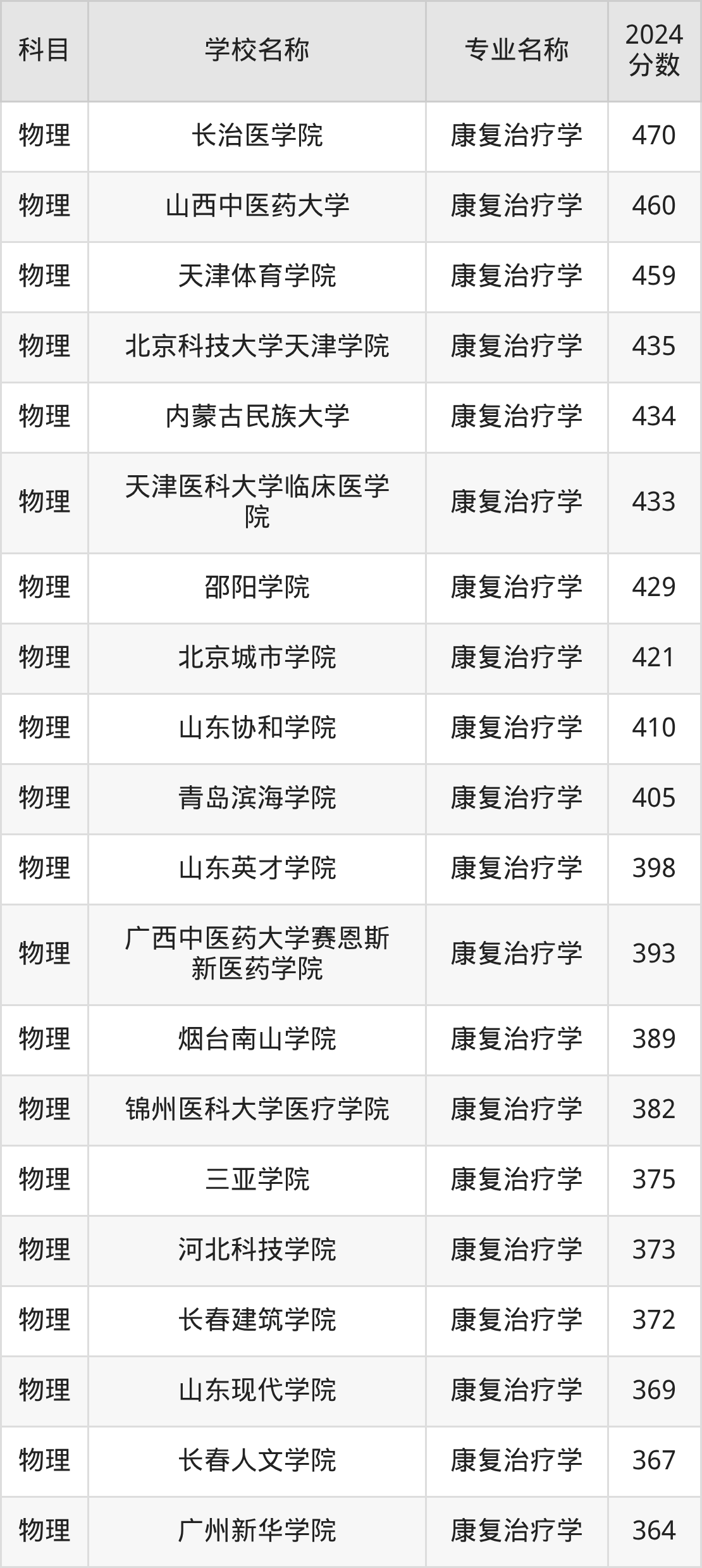 黑龙江高考物理组:康复治疗学专业的最低分是360分~465分