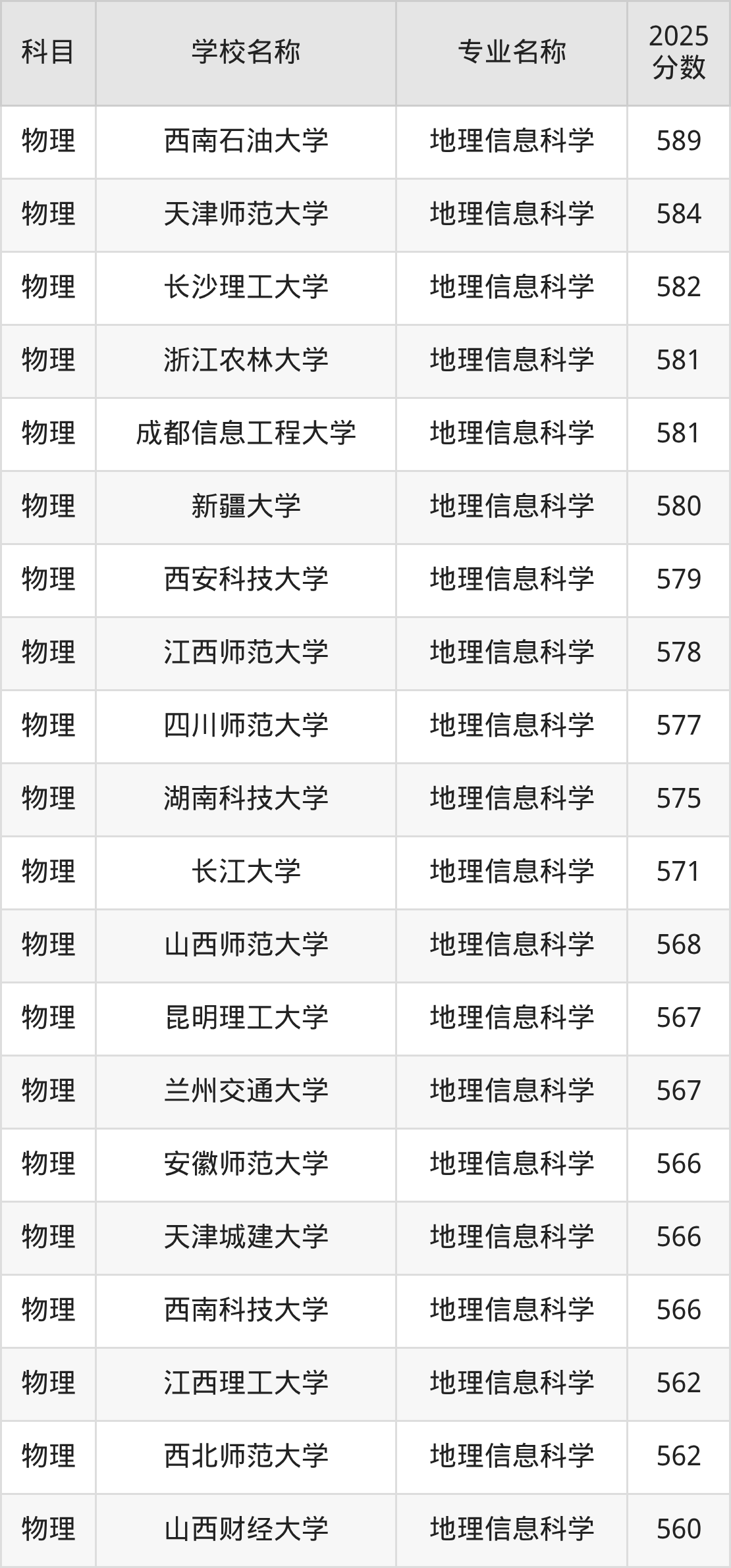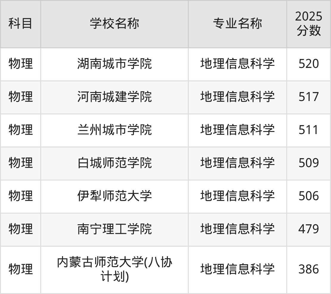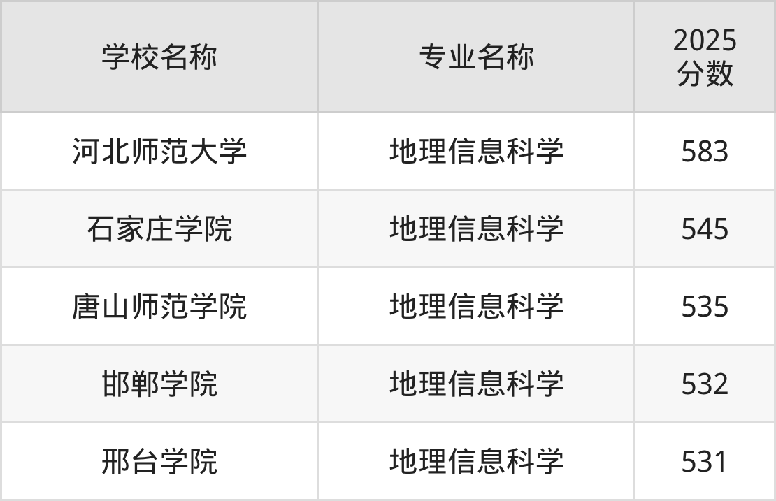 下文将为大家展示河北省大学地理信息科学专业2025年在河北高考的最低录取分数线!