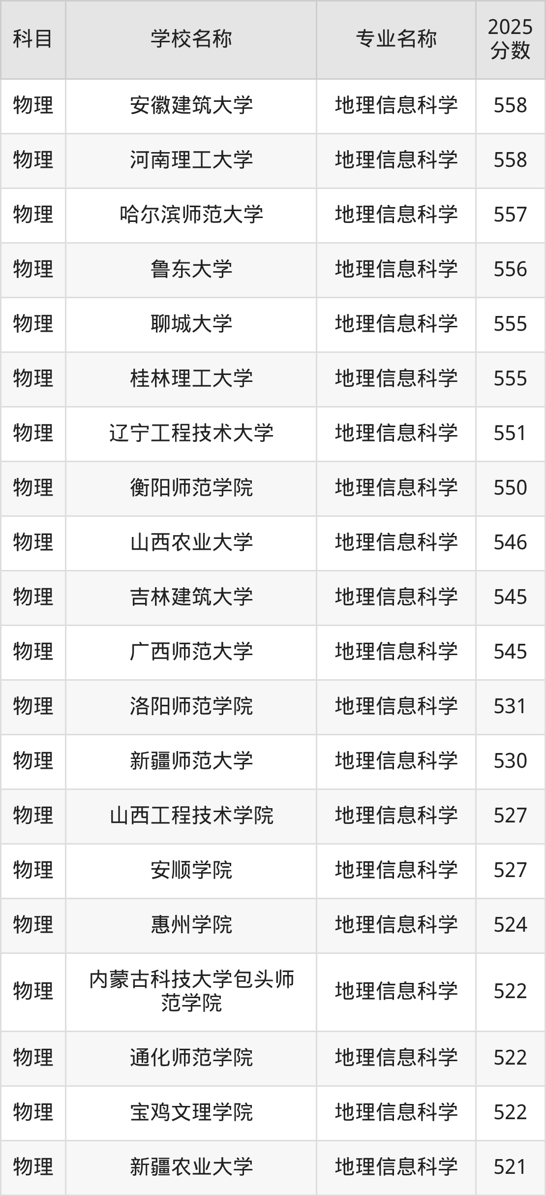 河北高考物理组:地理信息科学专业的最低分是521分~572分