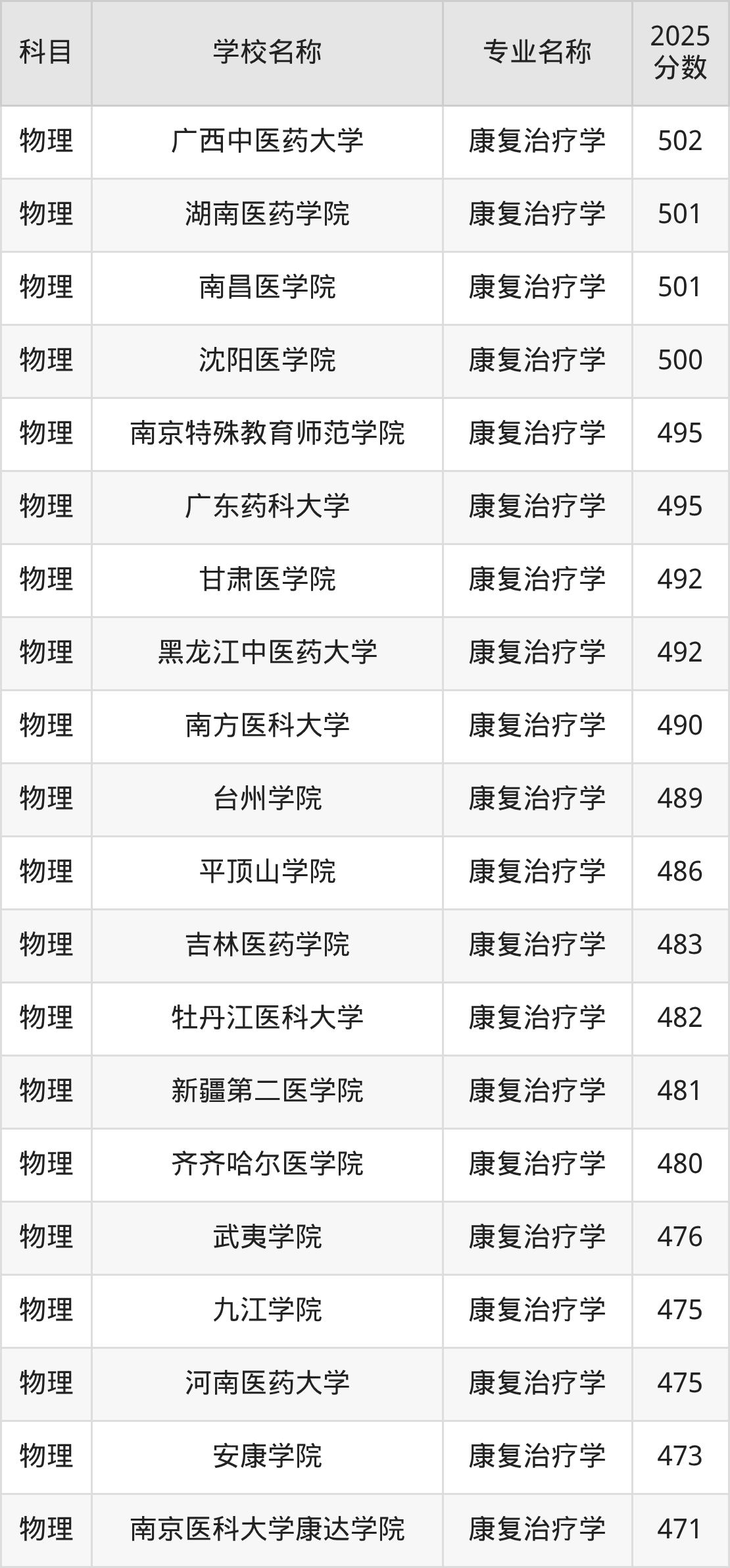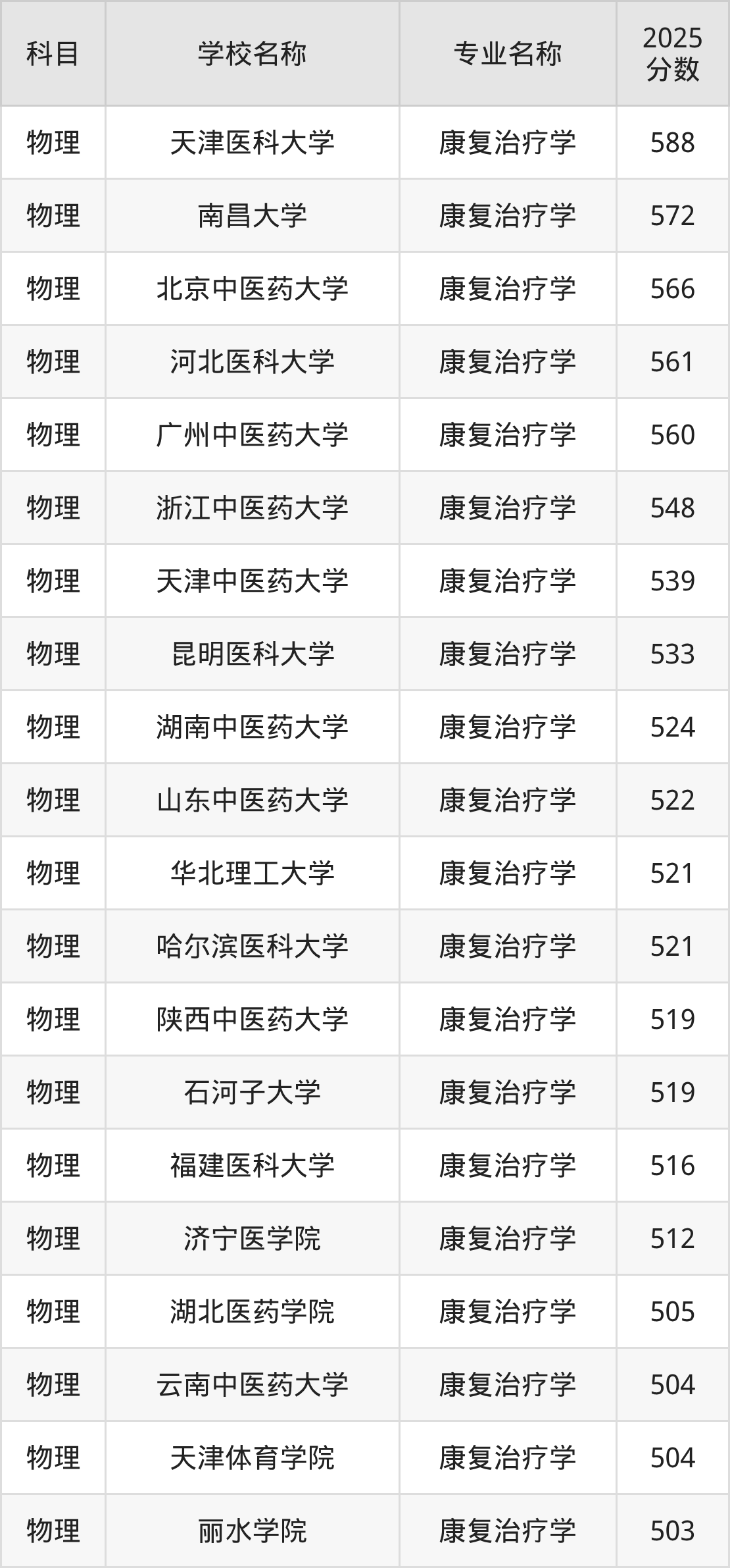 | 山西医科大学 | 康复治疗学 | 504 |