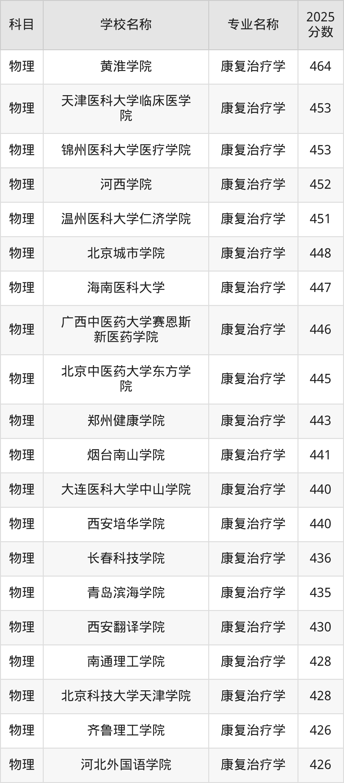 | 晋中健康学院 | 康复治疗学 | 434 |