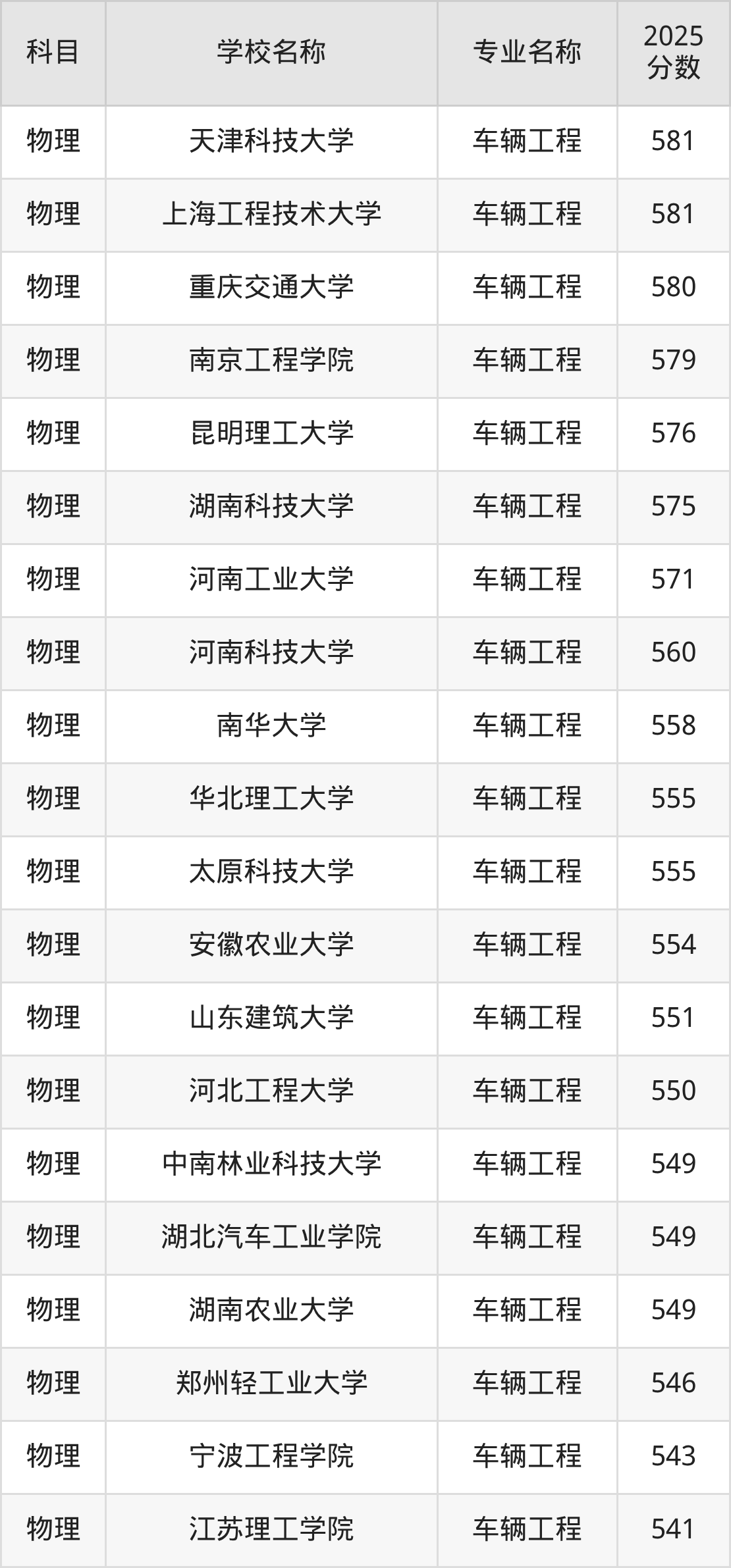 下文将为大家展示辽宁省大学车辆工程专业2025年在辽宁高考的最低录取分数线!