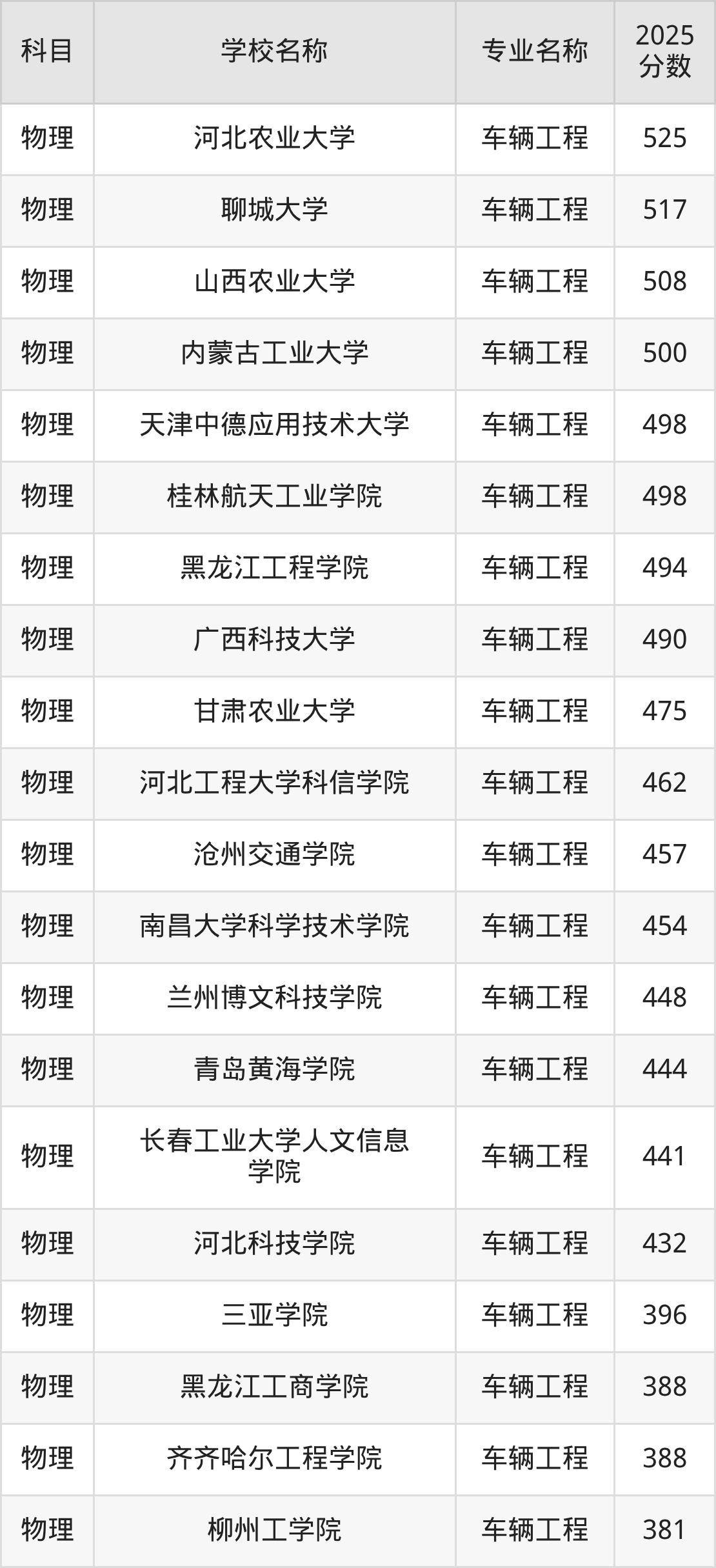 | 沈阳工学院 | 车辆工程 | 400 |