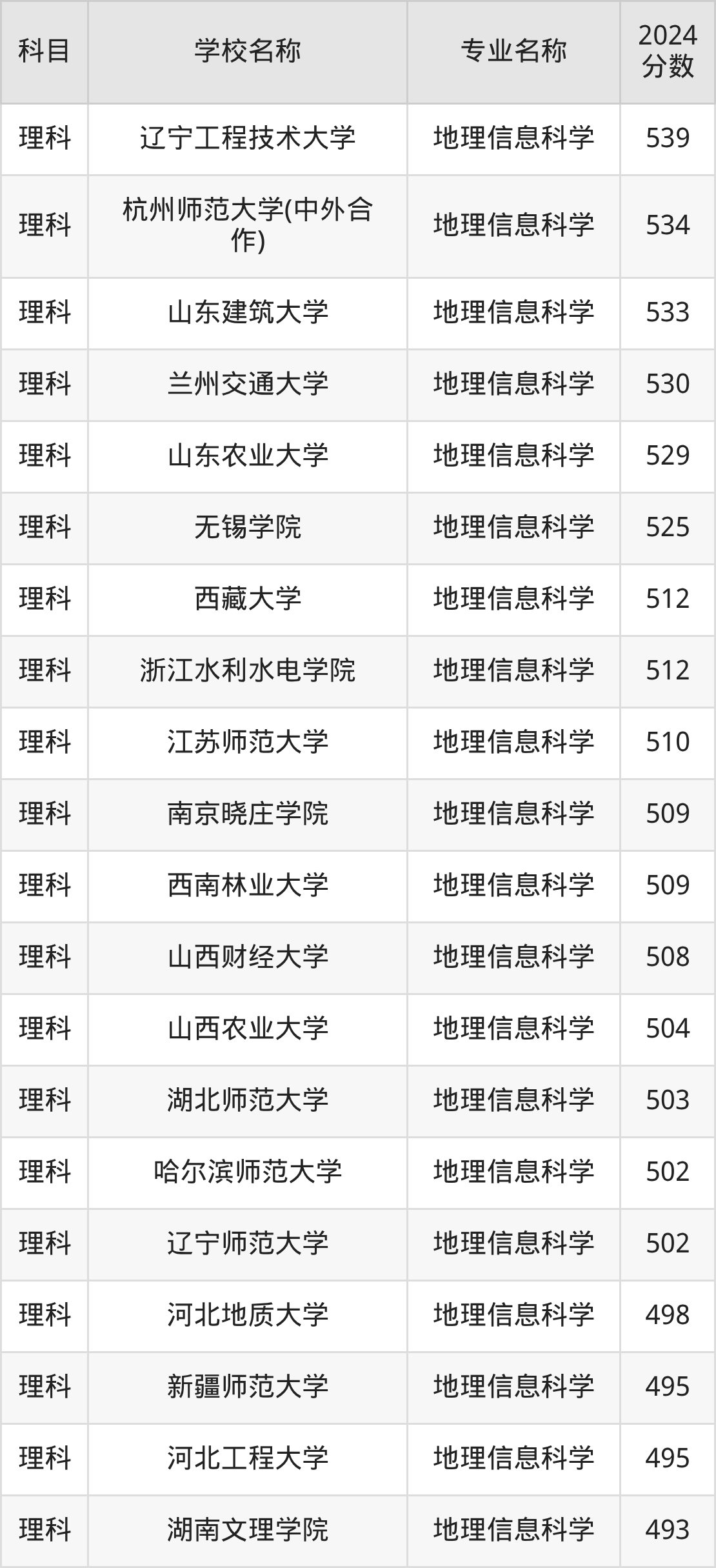 | 河南财经政法大学 | 地理信息科学 | 536 |