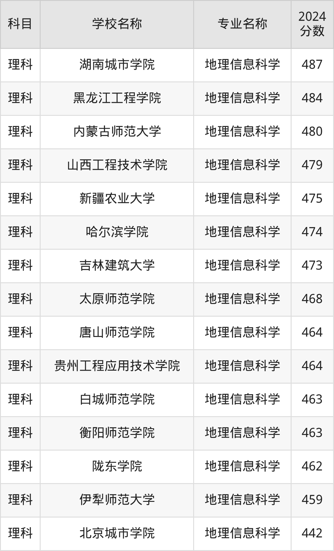 | 河南城建学院 | 地理信息科学 | 471 |