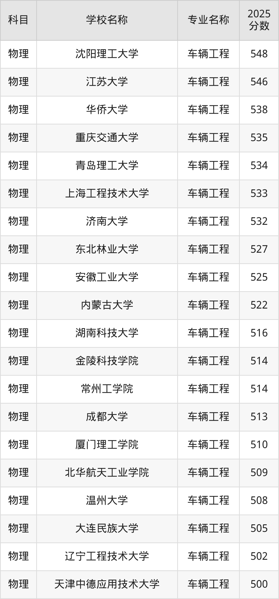 圆梦小编根据吉林2025年高考物理组专业分,将开设了车辆工程专业且位于吉林省内的大学按照“录取分”从高到低排序,得出了以上榜单。