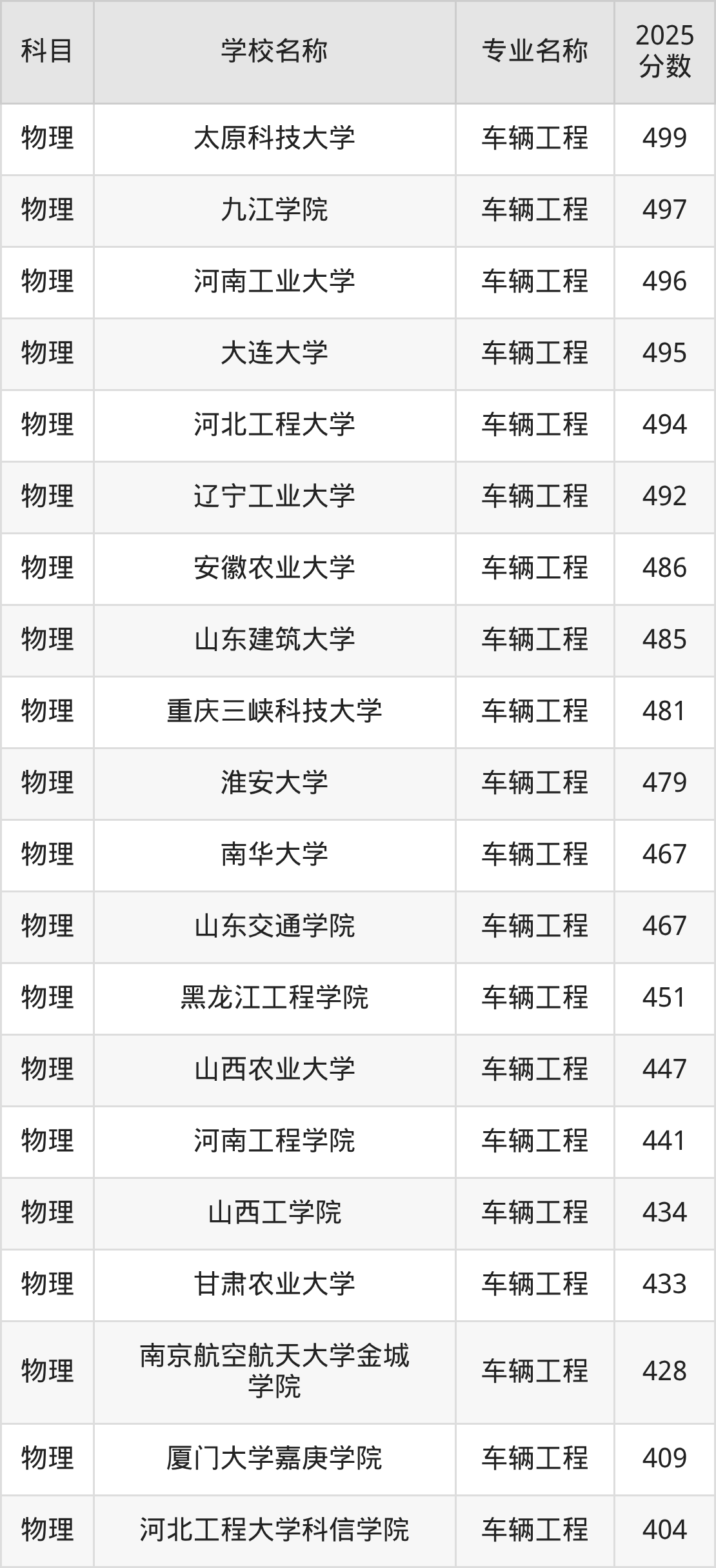 | 长春大学 | 车辆工程 | 484 |