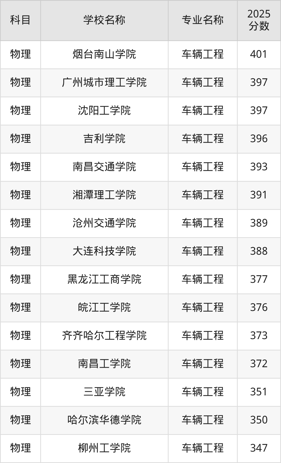 下文将为大家展示吉林省大学车辆工程专业2025年在吉林高考的最低录取分数线!