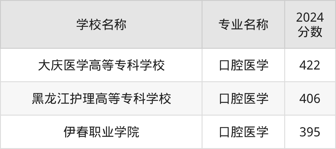| 黑龙江护理高等专科学 校 | 口腔医学 | 374 |