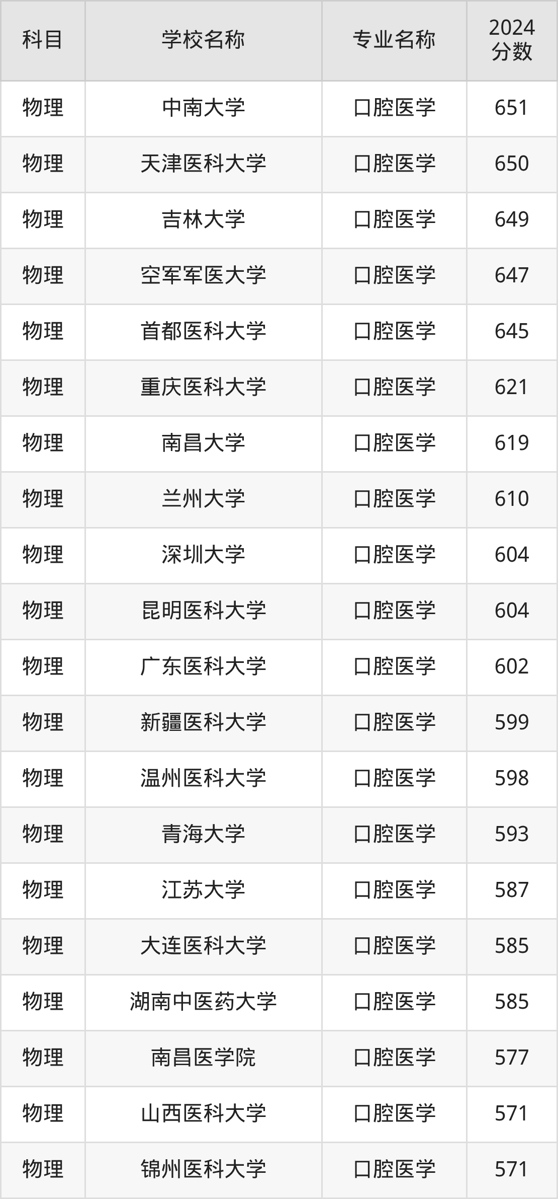 | 哈尔滨医科大学 | 口腔医学 | 616 |