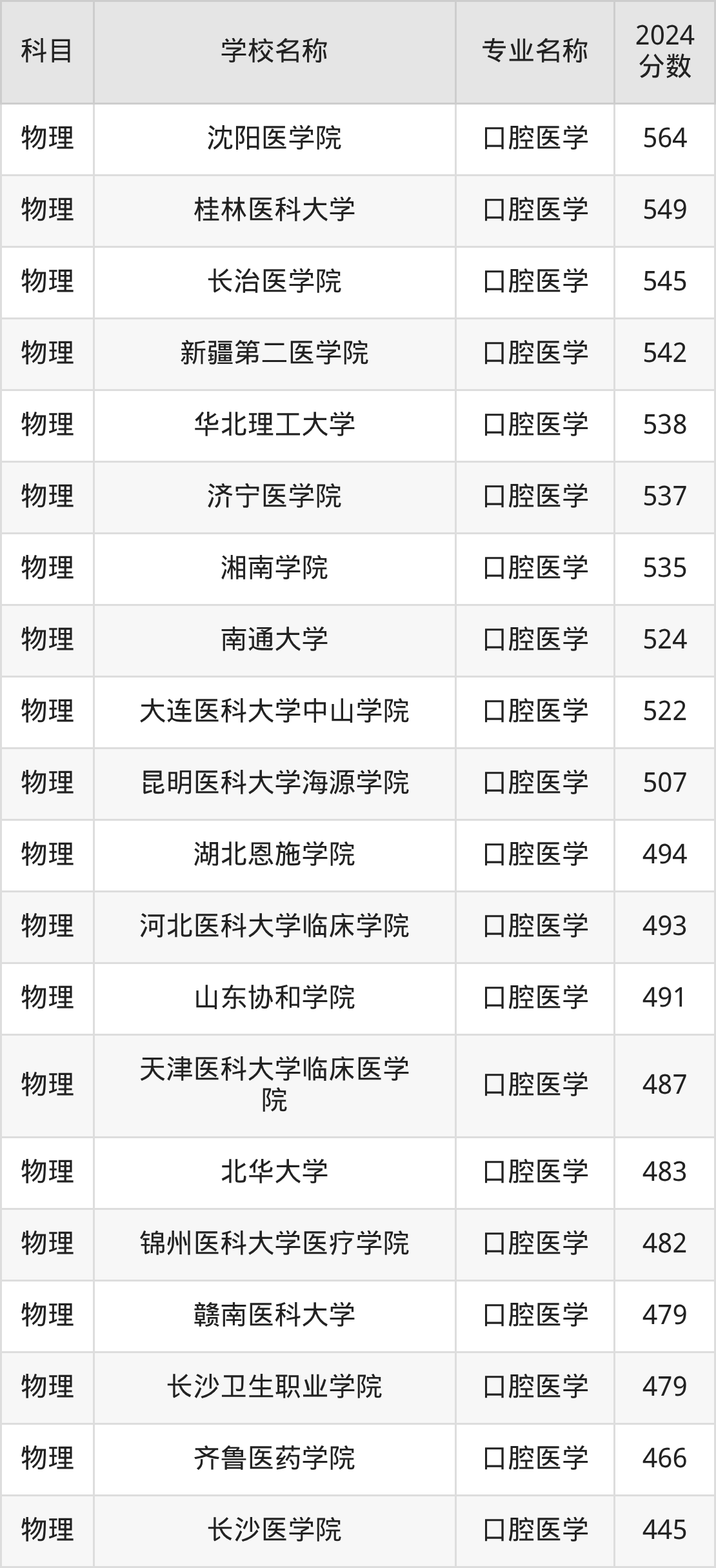 | 牡丹江医科大学 | 口腔医学 | 549 |