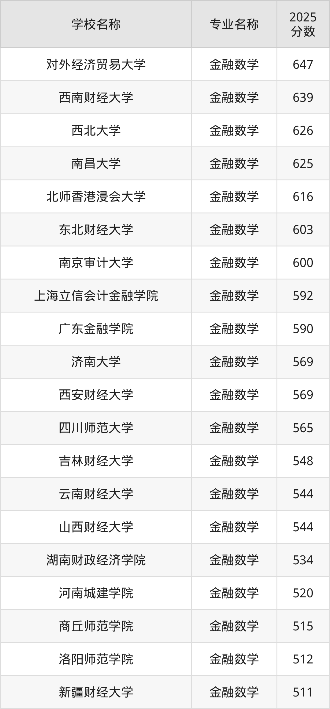 | 浙江财经大学 | 金融数学 | 590 |